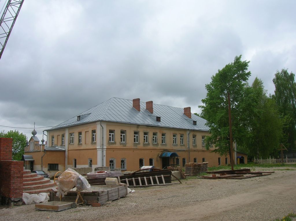 Предмет охраны объекта культурного наследия федерального значения«Учебный корпус Лаврентьевского монастыря», 1734 – 1735 гг. Предметом охраны объекта культурного наследия федерального значения «Учебный корпус Лаврентьевского монастыря», 1734 – 1735 гг., расположенного по адресу: Калужская область, г. Калуга, ул. Широкая, 49, являются:Местоположение и градостроительные характеристики здания, его роль в композиционно-планировочной структуре Лаврентьевского монастыря. Объемно-пространственная композиция сооружения:- двухэтажное, прямоугольное в плане (вытянуто по условное оси запад-восток).Конструкция крыши: - четырёхвальмовая у основного объема, шатровая четырехскатная с ломаным скатом и шпилем - крыльца, материал, характер кровельного покрытия и высотные отметки крыши здания;- слуховое окно по восточному скату крыши и два по северному скату. Композиция и архитектурно-художественное оформление фасадов:- оформление фасадов лаконично;- оси проёмов первого и второго этаже не вполне совпадают;- композиция фасадов образована простыми метрическими рядами окон по первому и второму этажам;- окна первого этажа восточного и северного фасадов арочные с лучковыми перемычками; окна первого этажа южного и западного фасадов, а также всего второго этажа прямоугольные;- окна лишены декоративного оформления;- все фасады здания фланкированы упрощёнными пилястрами на всю высоту фасадов, капители пилястр многообломные и объединены с венчающим профилированным карнизом, как его раскреповки;- этажи разделены междуэтажным профилированным, упрощённым карнизом;- примерно посредине восточного фасада расположена пилястра на всю высоту фасада, аналогичная пилястрам угловым;- примерно посредине южного фасада расположена пилястра на втором этаже, аналогичная пилястрам угловым;- примерно посредине западного фасада (со смещением от центральной оси влево) расположена пилястра на втором этаже, аналогичная пилястрам угловым;- примерно посредине северного фасада (со смещением от центральной оси вправо) расположена лопатка на втором этаже.Количество, расположение, габариты, конфигурация оконных и внешних дверных проемов здания (современное состояние): - стены здания прорезаны шестьюдесятью одним оконным проёмом (тринадцатью арочными окнами с лучковым завершением и сорока восемью окнами прямоугольными), кроме того, на восточном фасаде на втором этаже присутствуют два ложных окна;- стены здания также прорезаны тремя дверными проёмами (один на восточном фасаде, один на северном фасаде, один на западном фасаде). Историческая пространственно-планировочная структура интерьеров здания (изначально): - сомкнутые своды келий первого этажа;- цилиндрические (гуртовые своды) коридора первого этажа;- сомкнутые четырехгранные, с распалубками над оконными и дверными проемами, и коробовые своды помещений жилого этажа;- коридорно-ячеистая структура планировки.Конструкции фундаментов, капитальных стен здания: фундамент из бутового камня, стены - кирпичные на известковом растворе, оштукатурены и окрашены; несущие стены, их материалы (кирпичные на известковом растворе) и конструкции, которые образуют основу планировки здания.