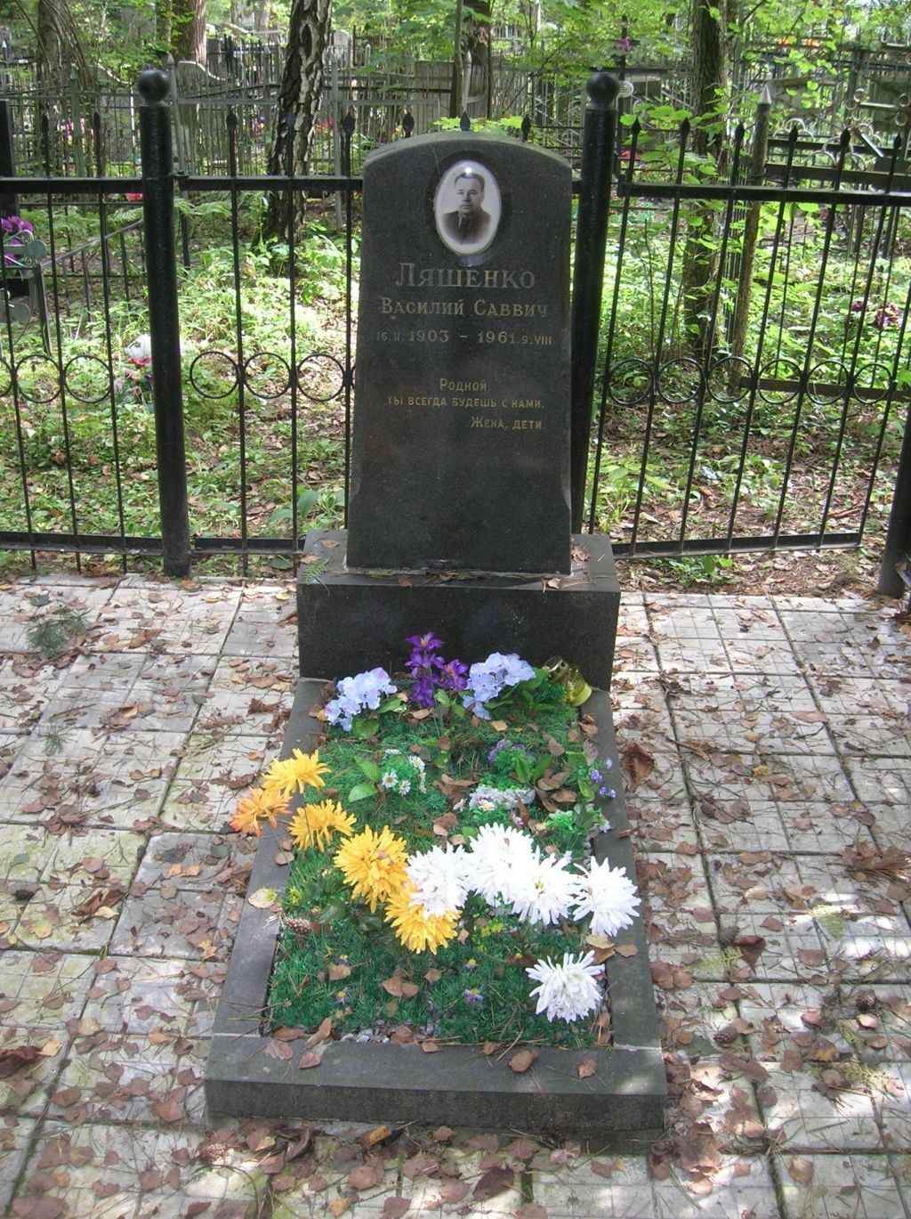Предметом охраны объекта культурного наследия регионального значения «Могила профессора, химика В.С. Ляшенко, 1961 г.», расположенного по адресу: Калужская область,г. Обнинск, городское кладбище, являются:Местоположение объекта:- возле центральной аллеи кладбища (к западу от нее).Композиционное и объемно-пространственное решение памятника:- могильный холм и надгробие, обнесенные оградой (в пределах ограды, севернее, могила супруги – Е.И. Ляшенко).Конструктивные особенности:- могильный холм, обрамленный бордюром;- надгробие: постамент в форме параллелепипеда; стела с сегментным завершением (углы в серединной части оформлены фасками);- вымощенная тротуарной плиткой территория памятника.Техника и материалы объектов:- гранитный бордюр могильного холма;- гранитные постамент и стела с эллиптической формы нишей с портретом В.С. Ляшенко (металл, эмаль), расположенной в верхней части стелы, по ее оси.Тексты, введенные в состав памятника: - «Ляшенко Василий Саввич. 16.II.1903 – 1961. 9. VIII. Родной, ты всегда будешь с нами. Жена, дети».