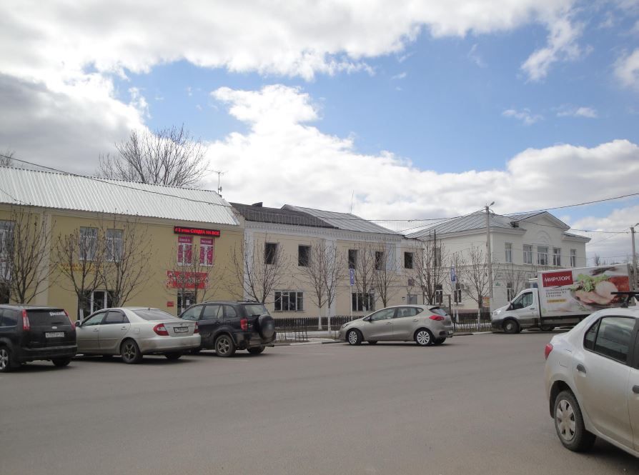 1. Градостроительная характеристика здания, расположенного на южной стороне площади в сплошном ряду домов, участвующего в формировании пространства площади.2. Объемно-пространственная композиция прямоугольного, Г-образного в плане здания с основным 2-этажным объемом на красной линии площади, перекрытым на 2 ската, и длинным 2-1-этажным крылом, отходящим вглубь участка, понижающимся и перекрытым скатом, продолжающим дворовый скат основного объема.3. Количество, осевое расположение, габариты и форма входных и оконных проемов.