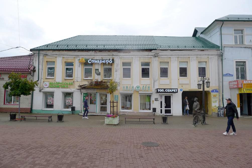 - градостроительная характеристика здания, расположенного в плотном ряду однородных по масштабу домов, который тянется по красной линии ул. Театральной;- объёмная структура здания, состоящего из первоначального объема дома и ряда поздних дворовых построек, примыкающего к дому и тянущегося по северной и восточной границам усадьбы; объемная структура дома – прямоугольный в плане, вытянутый вдоль улицы 2-этажный объем с выступом в середине дворового фасада, прорезанный в южной части проездной аркой и перекрытый крышей с северной вальмой; объемная структура комплекса дворовых построек – примыкающих друг к другу, 2-этажных, перекрытых на 2 ската и ступенчато повышающихся вглубь двора; у объема на восточной границе домовладения – образованная для балкона трапециевидная в плане вогнутость 2-го этажа; высотные отметки по конькам крыш всех объемов;- количество, осевое расположение, габариты и форма оконных и дверных проемов, лучковые перемычки окон на дворовом фасаде дома и дворовом фасаде постройки, примыкающей к дому, лучковая перемычка входа во 2-й объем на северной границе домовладения; арочная и лучковые перемычки на 2-м этаже дворового фасада постройки, расположенной на восточной границе домовладения; ниши с лучковыми перемычками в южной стене проездной арки;- материал капитальных стен – красный кирпич, перекрытие проездной арки – по балкам;- композиционные решения и оформление фасадов:- главный западный фасад: плоскостное оформление, которое составляют фланговые широкие лопатки и членящие фасад чуть менее широкие лопатки, помещенные в каждом простенке; под окнами 2-го этажа – лежачие прямоугольныенакладки; узкие лежачие накладки, поддерживающие невысокий фриз; венчающийкарниз, состоящий из полочек и ряда профилированных кирпичей;- дворовые фасады усадебных построек: фасад объема, примыкающего к дому – междуэтажный карниз из полочек, лопатка в середине фасада, бровки надокнами 1-го этажа, венчающий антаблемент, состоящий из невысокого фриза и карниза, набранного из полочек и опирающегося на сухарики; фасад 2-го объема на северной границе – венчающий антаблемент, состоящий из невысокого фриза и карниза на сухариках; фасад объема на восточной границе домовладения, 2-й этаж – широкий архивольт с валиком арочного дверного проема, бровки над проемами по сторонам дверного проема, венчающий фасад карниз на сухариках;- поверхности наружных уличных западной и северной стен – штукатурка и окраска в светло-охристый или другой светлый цвет с побелкой деталей декора, поверхности остальных стен – лицевая кладка кирпича;- пространственно-планировочная структура интерьеров:- дом: структура 1-го этажа, состоящая из просторного пространства лавки сдвумя столбами, несущими перекрытие, и двумя угловыми печами, подсобного помещения за этим пространством и лестничной клетки с междуэтажной лестницей; деление 2-го этажа на западную часть с жилыми и парадными комнатами, которые выходят окнами на улицу, и восточную часть со вспомогательными помещениями;- дворовые постройки: местоположение междуэтажных лестниц в западнойчасти постройки, примыкающей к дому; во 2-й постройке на северной границе домовладения – крупные проемы с арочными и дугообразными перемычками, связывающие помещения, перекрытия помещений сводами Монье; постройка на 