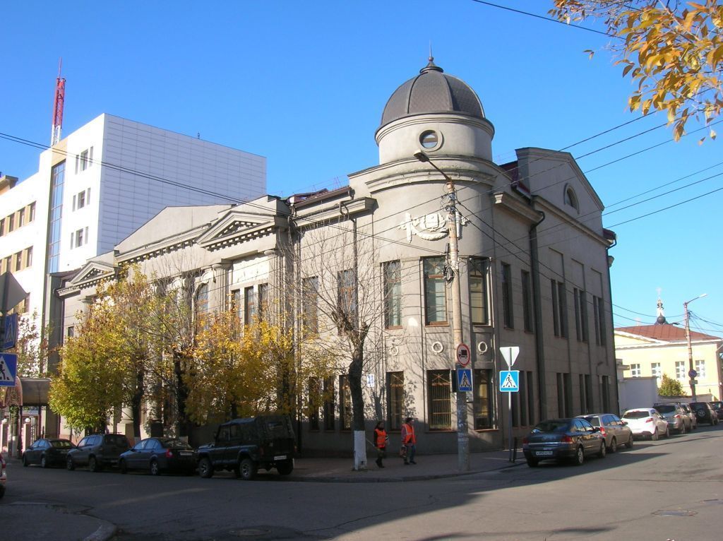 Предметом охраны объекта культурного наследия регионального значения «Здание бывшего Поземельного банка», 1914 г., расположенного по адресу: Калужская область, г. Калуга, ул. Театральная, 38, являются:местоположение и градостроительные характеристики зданияЗдание имеет угловое местоположение на пересечении улиц Театральной и Карпова. Объект культурного наследия является образцом общественного здания, выстроенного в формах неоклассицизма, играет роль доминанты в окружающей исторической фоновой застройке. С запада по линии застройки ул. Карпова примыкают ворота. Ворота состоят из пары пилонов с помещенными в центре каждого пилона экседрами и завершенными аттиками. На пилоны наложены портики дорического ордера. С запада примыкает кирпичная ограда.объемно-пространственная композиция зданияЗдание двухэтажное с подвалом имеет прямоугольный план, усложненный скругленным северо-восточным углом с расположенным над ним куполом на высоком цилиндрическом барабане (первоначальный вид купола на фото 2), а также тремя эркерами на западном фасаде и двумя ризалитами восточного фасада. Здание завершено двускатной крышей с высоким фронтоном с северной стороны и щипцом с южной сторон. Мансардный этаж и неполный 4-й этаж, надстроенные в ходе работ по приспособлению под современное использование в 1990-х годах, навес перед входом на восточном фасаде не относятся к предмету охраны. композиция и архитектурно-художественное оформление фасадовСеверный фасад, северо-восточный скругленный уголСеверный фасад имеет ассиметричную композицию. (фото 1). Большую часть фасада занимает широкий слегка выступающий ризалит, завершенный высоким треугольным фронтоном (первоначально здесь располагался прямоугольный аттик, фото 2). Фронтон отделен профилированным карнизом небольшого выноса, по верху фронтона также протянут профилированный карниз (фото 3,4). Ризалит имеет три композиционные оси, образованные вертикальными нишами, в которых размещены оконные проемы 1-го и 2-го этажей. Окна сгруппированы по два на этаже в каждой нише, кроме крайней западной оси; здесь в 1-м этаже помещен один проем, обрамленный порталом, в виде пилястрового портика с композитными капителями (фото 5). Первоначально здесь располагался входной проем с навесом (фото 6). Ризалит от выступа цоколя до верхней границы ниш обработан рустовкой. Остальная часть фасада декорирована рустовкой, прорезана оконными проемами, двумя во 2-м этаже и тремя близко расположенными в 1-м этаже. Венчающий карниз этой части фасада слегка понижен. (фото 7). Количество оконных и дверных проемов: по 8 оконных проемов прямоугольной формы на 1-м и 2-м этажах, окно фронтона полуциркульной формы; дверные проемы отсутствуют. Северо-восточный скругленный угол декорирован пилястрами, помещенными в простенках оконных проемов, образующих три вертикальные оси и объединяющих окна обоих этажей. (фото 8). Между окнами 1-го и 2-го этажей, устроены три прямоугольные ниши, в которых размещены барельефные изображения венков (фото 9). Над центральным окном 2-го этажа помещена барельефная композиция, состоящая из пары факелов, обвитых лентами и объединенных внизу гирляндой, фланкирующих герб Калужской губернии. (фото 10). Угол завершен невысоким аттиком, декорированным профилированными карнизами (фото 11). Руст на углу отсутствует