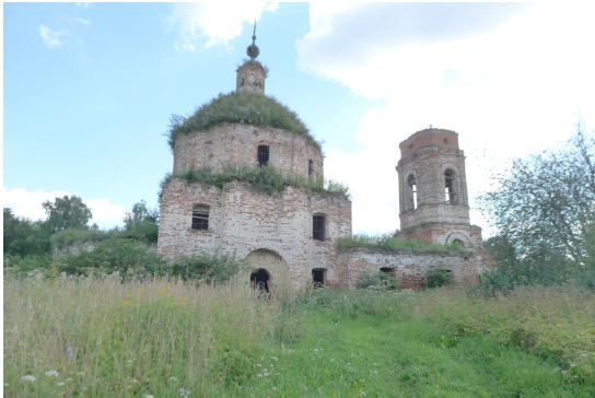- ландшафтно-градостроительная характеристика церкви, расположенной при въезде в деревню Зубово, на возвышенности у левого берега речки Течи, вблизи усадебного парка и являющейся организующей формой обширного ландшафта;- объемная композиция церкви, которую образуют: храм типа восьмерик на четверике, усложненном крупными ризалитами, с куполом восьмерика, несущим 8-гранный барабан и луковицу на перетяге, увенчанную крестом на яблоке; полукруглая в плане апсида, невысокая трапезная с остатками 3-скатной крыши (необходимо ее восстановление) и 2-ярусная колокольня с нижним ярусом, состоящим из трех четвериков, и верхним ярусом звона, состоящим из четвериков с сильно срезанными углами; высотные отметки объемов и глав (необходима реставрация главы колокольни);- количество, расположение, габариты и форма оконных и дверных проемов;- материал капитальных стен – красный кирпич;- композиционные решения и оформление фасадов:- четверик: рустовка углов четверика и ризалитов, переходящая на фланги южного и северного фасадов; лопатки, наложенные на рустованные фланги с отступом от краев фасадов; лопатки, выложенные на флангах ризалитов с отступом от краев; в ризалитах – большие, глубокие арочные ниши с арочными проемами входов с замками; ниши киотов над входами; обрамляющий ниши веерный руст; над нишами между лопатками – ленточный руст; по сторонам ризалитов - вертикальные выступы; простые рамочные наличники с замками; карнизы четверика и ризалитов;- восьмерик: рустованные лопатки, огибающие углы; простые рамочные наличники с замками; профилированные сандрики, изогнутые по лучковой дуге; на световом барабане – угловые лопатки, рамочные наличники и профилированные карнизы;- трапезная: рустованные лопатки – фланговые и членящие фасады; рамочные наличники с замками; профилированные венчающие карнизы, включающие ряд кирпичей с выемкой;- колокольня: на первом и третьем четвериках – широкие фланговые лопатки; на боковых фасадах нижних четвериков между лопатками – пары вертикальных разношироких выступов; архивольты полукруглых проемов верхнего яруса; карнизы четвериков и фриз верхнего четверика; на ярусе звона до уровня проемов – фланговые широкие лопатки, переходящие на грани срезанных углов, узкие вертикальные выступы, поясок и карнизы; на уровне проемов – рустованные лопатки, переходящие на грани срезанных углов, приподнятые над карнизами; на завершающем ярус звона барабане – обрамления круглых окошек; необходима реставрация главы колокольни;- поверхности наружных стен: штукатурка и побелка или окраска в светлый цвет;- пространственно-планировочная структура интерьера:- в храме: переходы от четверика к восьмерику в виде ступенчатых тромпов, укрепленных металлическими стяжками; восьмилепестковый свод, укрепленный в основании металлическими стяжками; балки хор (возможно восстановление хор);остатки росписей: на стенах четверика - крупных сюжетных композиций в обрамлении колонн с арками; на стенах восьмерика, вокруг проемов и тромпов - обрамления; связывающие храм и алтарную часть 3 арки, боковые из которых - ползучие;- в алтарной части – конха, укрепленная металлическими стяжками, в одном из окон - кованая решетка в расщеп с неширокими полосами, остатки росписей;- в трапезной – 3 нефа, связанные подпружными арками, которые близки 