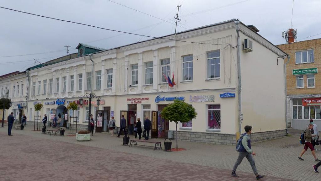 - градостроительная характеристика здания, начинающего с северной стороны ул. Театральной расположенный на красной линии однородный по масштабу 2-этажный западный фронт ее застройки и выделяющегося в этом фронте своей протяженностью и характерным классицистическим декором уличного фасада;- объемная композиция: прямоугольный в плане, вытянутый по красной линии 2-этажный первоначальный объем (с возможностью восстановления центральной проездной арки), удлиняющая его по красной линии северная пристройка (с возможностью восстановления проездной арки) и расширяющая его западная (дворовая) пристройка; крыша здания с северной вальмой и выпускными окнами на скатах; высотные отметки по коньку крыши;- количество, осевое расположение, габариты и прямоугольная форма оконных и дверных проемов;- материал капитальных стен – кирпич;- композиционные решения и оформление фасадов:- уличный фасад: симметричная композиция фасада первоначального объема с центральным и двумя фланговыми ризалитами, украшенными во 2-м этаже портиками – 6-пилястровым (целесообразно восстановление на левом фланге портика пилястры и фриза, а также фронтона портика) и 2-пилястровыми; у пилястр – основания, профилированные базы, валики, отделяющие стволы пилястр от бывших капителей, и абаки (целесообразно восстановление капителей); в центральном портике на трех центральных осях – подоконные прямоугольные накладки с филенками с выкружками и надоконные полукруглые филенки, во фланговых портиках – накладки с филенками в виде лежачих ромбов; под всеми окнами – профилированные подоконники; лучковая перемычка центральной проездной арки; на фасаде северной пристройки – аналогичный декор, включающий 4-пилястровый портик во 2-м этаже (целесообразно восстановление фронтона портика) и в пределах портика подоконные накладки с филенками с выкружками и профилированные подоконники; узкий тянутый профилированный междуэтажный карниз и довольно высокий многообломный тянутый профилированный венчающий карниз;- остальные фасады: довольно высокий многообломный тянутый профилированный венчающий карниз;- поверхности наружных стен: штукатурка и окраска в светлый (возможно, охристо-песочный) цвет с побелкой деталей декора;- пространственно-планировочная структура интерьера: стены, разделяющие первоначальный объем и пристройки; на 1-м этаже – стены центральной проезднойарки, членящей этаж первоначального объема на равные части, стены, членящие эти части на торговые помещения со стороны улицы и вспомогательные помещения со стороны двора, стена между бывшим флигелем и северной проездной аркой, внутри помещения центральной проездной арки на оси стен, ограничивающих торговые помещения, – лучковая перемычка.