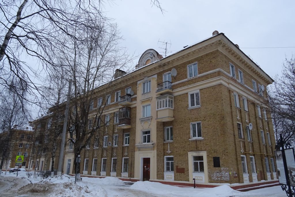 5Дом жилой, ул. Мира, 55.1Объёмно-пространственная композиция здания:Четырехэтажное здание с вальмовой крышей, имеющей пологий скат, вытянутое с севера на юг. В северной части здание выполнено уступом, уходящим внутрь от красной линии и формирующим угловой ризалит дворового фасада. К боковому северному фасаду пристроен высокий портик, опирающийся на квадратные столбы.5.2Конструктивная система здания5.2.1. Смешанная конструктивная система - каркасно-стеновая в традиционном исполнении (кирпичная кладка).5.2.2. Скатная кровля.5.2.3. Высотные отметки по венчающему карнизу и конькам крыши.5.2.4. Крыша, её конструкция, материал, конфигурация, характер кровельного покрытия.5.2.5. Исторические лестницы (габариты, конфигурация, марши).5.2.6. Исторические отметки междуэтажных перекрытий.5.3Объёмно-планировочное решениеИсторическое объёмно-планировочное решение здания в габаритах капитальных стен: четырехэтажный многоквартирный жилой дом с подвалом.5.4Композиция и архитектурно-художественное оформление фасадов5.4.1. Портик высотой в три этажа, опирающийся на квадратные столбы, пристроенный к северному фасаду.5.4.2. Членение боковых фасадов при помощи пилястр:- капители пилястр;- декоративное украшение в верхней части пилястр в виде колосков.5.4.3. Декоративная штукатурка под руст в оформлении цоколя. 5.4.4. Элементы вертикального членения здания: - цокольный карниз по периметру всего здания в виде фасции;-валик тяги, проходящей по цоколю;- междуэтажный карниз, разделяющий третий и четвертый этажи правого крыла здания в виде фасции;- венчающий карниз по периметру здания, украшенный сложным орнаментом из иоников, дентикул и профилированных тяг;- широкий кессонированный свес крыши, на модульонах с акантом, кессоны украшены цветочным орнаментом;- фриз под свесом, украшенный сложным декором, включающим капельку, дентикулы и медальоны.5.4.5. Местоположение, количество, форма, размер оконных проёмов, включая подвальные и чердачные (слуховые) окна;- исторический рисунок переплётов оконных рам; - местоположение и размер наружных дверных проёмов, включая балконные двери.5.4.6. Перспективные порталы входов в здание:- профилированные наличники с сандриками в виде антаблементов на небольших пилястрах.5.4.7. Декоративное украшение фасадов: - декоративная штукатурка на фасадах в местах расположения входов в здание:- на лицевом фасаде в левой части здания по высоте - до четвертого этажа;- на дворовом фасаде и в правой части лицевого фасада - до уровня второго этажа;- профилированные наличники оконных проёмов второго этажа над дверными проёмами лицевого фасада;- карнизы на консолях под окнами второго этажа лицевого фасада;- декор в виде открытых занавесей под кар-низами второго этажа над дверными проёмами лицевого фасада в левой части лицевого фасада;- ложный балкон над дверными проёмами на уровне третьего этажа;- декоративное оформление подоконных стенок над дверными проёмами на уровне третьего этажа, включающие в себя ячеистый узор, снопы, ели, цветочный орнамент;- декоративная штукатурка вокруг оконных проёмов первого этажа дворового фасада;- декоративное украшение подоконных стенок первого этажа в виде шляпок гвоздя;- декор под окнами второго и третьего этажей в правой части лицевого фасада и на боковых фасадах в виде шляпки гвоздя с от-ходящими в стороны колосками и 