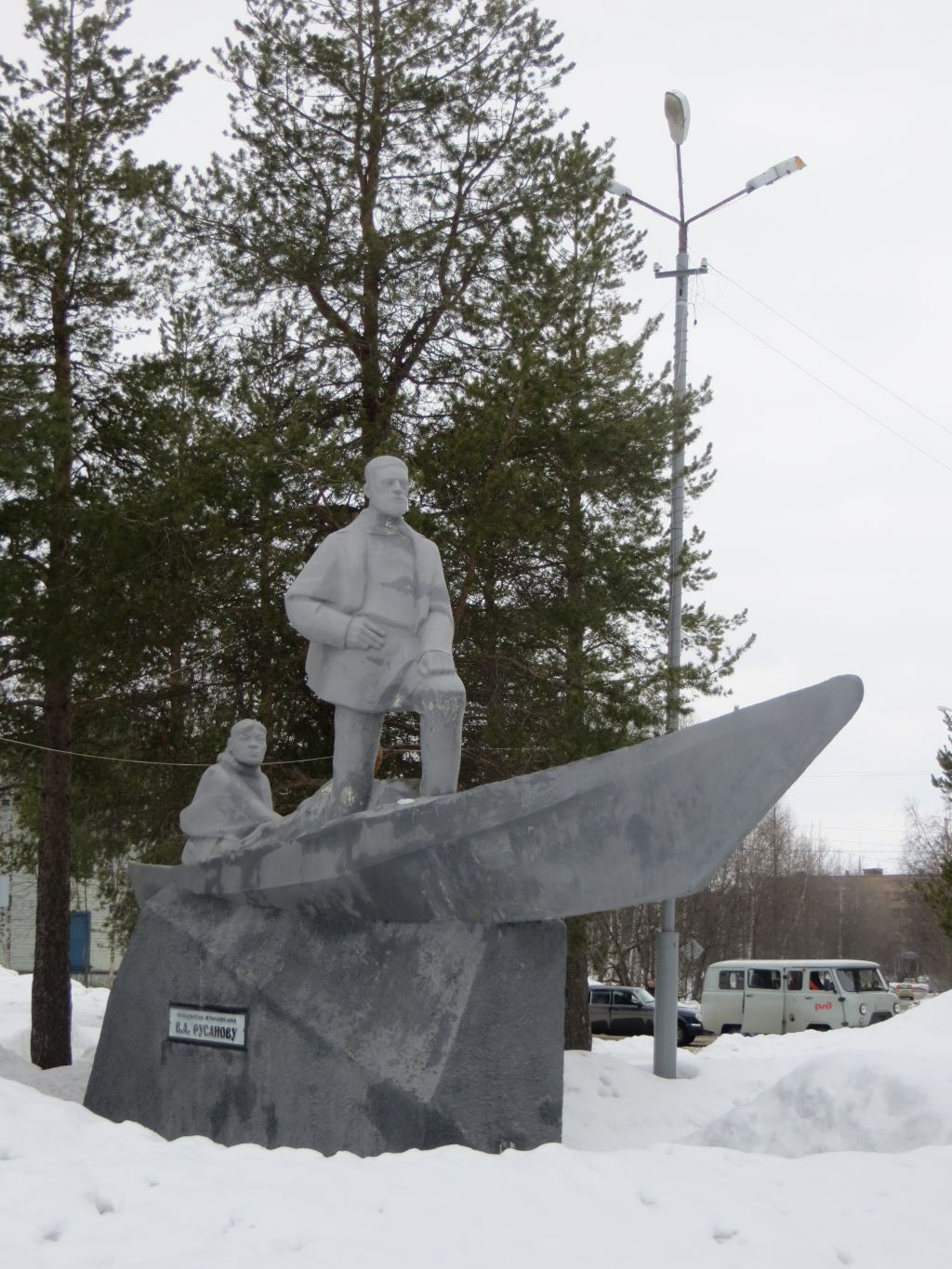 К особенностям, составляющим предмет охраны объекта культурного наследия регионального значения «Скульптурный монумент В.А.Русанову в г. Печора» (уточненное наименование – «Памятник В.А.Русанову»), расположенного по адресу: г. Печора, ул. Куратова, берег р. Печоры и подлежащим обязательному сохранению, относится:- место установки памятника, имеющее географические координаты 65° 6'42.24''С 57° 10'7.48''В (в начале ул. Куратова на берегу р. Печоры); - двухфигурная скульптура в виде стоящей в центральной части лодки фигуры В.А. Русанова, внимательно всматривающегося в девственные берега полноводной Печоры и фигуры проводника-зырянина, сидящего с веслом на корме лодки, в единой связи с постаментом в виде каменной глыбы сложной формы, символизирующей высокую волну р. Печоры;- надписи, высеченные на постаменте: в части обращенной на реку - «Исследователю Печорского края В. А. Русанову», на обратной стороне постамента - «Придет время, когда на том берегу Печоры будет построен город, а здесь разбит прекрасный парк и этим изумительным зрелищем будет наслаждаться рабочий люд. В.А. Русанов».