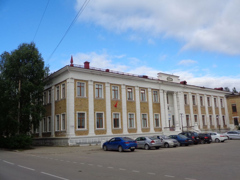 Дом связи, ул. Мира, 1617.1Объёмно-пространственная композиция здания:Прямоугольное двухэтажное здание, лицевым, южным фасадом, выходящее на ул. Мира.17.2Конструктивная система здания17.2.1. Смешанная конструктивная система - каркасно-стеновая в традиционном исполнении (кирпичная кладка).17.2.2. Скатная кровля.17.2.3. Высотные отметки по венчающему карнизу и конькам крыши. 17.2.4. крыша, её конструкция, материал, конфигурация, характер кровельного покрытия (фальцевое).17.2.5. Исторические лестницы (габариты, конфигурация, марши).17.2.6. Исторические отметки междуэтажных перекрытий.17.2.7. Ризалит в центральной части дворового фасада.17.3Объёмно-планировочное решение.Историческое объёмно-планировочное решение здания в габаритах капитальных стен: двухэтажное здание общественно-административного назначения17.4Композиция и архитектурно-художественное оформление фасадов17.4.1. Перспективный портал главного входа высотой в два этажа. 17.4.2. Крыльцо с каменной лестницей, огражденной балюстрадой;тумбы опор балюстрады с фигурными вазонами.17.4.3. Декоративное оформление портала главного входа:- профилированные наличники оконных и дверных проёмов;- сандрик над дверным проёмом главного входа;- фрамуга (прямоугольное окно) над дверным проёмом;- рустованные колонны с капителями в виде аканта, украшенными элементами советской символики;- подоконная ниша второго этажа, отделенная от оконного проёма профилированным карнизом;- стилизованный щит с красной звездой, излучающей свет в подоконной нише. Щит сверху и по обе стороны обрамлен рокайлями и фестонами; - угловые пилястры.17.4.4. Ступенчатый аттик на крыше над порталом главного входа с фигурной филенкой в центральной части тимпана, украшенной в верхней части изображением серпа и молота;надпись в поле филенки «Дом связи».17.4.5. Элементы вертикального членения здания: - цокольный карниз по периметру всего здания в виде фасции;- венчающий карниз по периметру здания, украшенный дентикулами, в нижней части карниза проходят профильные горизонтальные полосы;- подшив свеса крыши.17.4.6. Горизонтальное членение при помощи рустованных пилястр.17.4.7. Местоположение, количество, форма, размер оконных проёмов, включая подвальные и чердачные (слуховые) окна;исторический рисунок переплётов оконных рам; местоположение, форма и размер наружных дверных проёмов.17.4.8. Декоративное оформление фасадов:- профилированные наличники оконных и дверных проёмов;- декоративная башенка на крыше здания;- вертикальные рустованные бордюры на углах здания.17.5Сохранившиеся элементы интерьеров- Двойная возвратная лестница;- профилированные пояски по ходу лестничных маршей и в помещениях;- кессонная подшивка лестничных маршей;- кессонные потолки; - люстры в розетках, бра;- панели с наличниками и сандриками, украшенные растительным орнаментом;- элементы членения коридоров с плоскими перемычками и коробовыми арками.17.6Местоположение объекта и связь с окружающей средойЗдание расположено на перекрестке улицы Мира и проезда меду улицами Мира и Кремса. Находится в композиционной и визуальной взаимосвязи со зданием Ухтинского железнодорожного техникума по ул. Мира, 11 и жилым домом по ул. Кремса, 5.