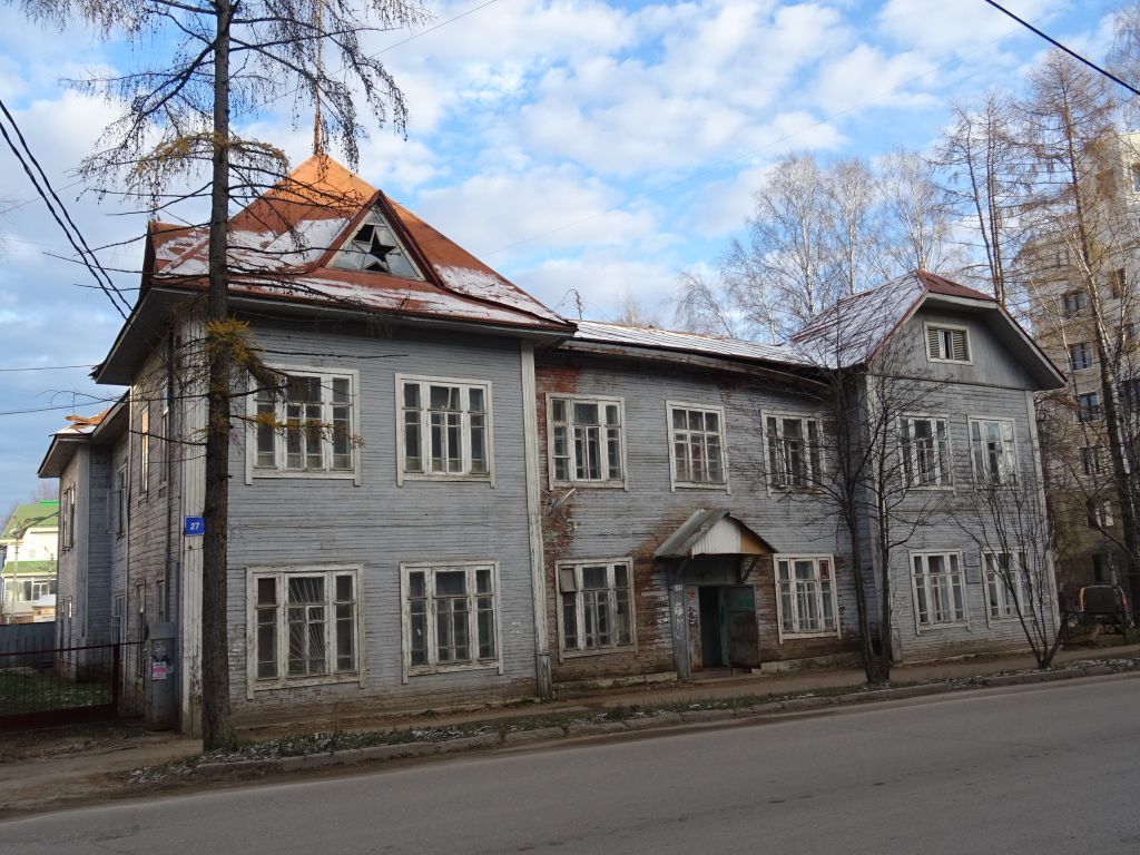 К особенностям, составляющим предмет охраны объекта культурного наследия регионального значения «Школа рабочей молодежи» (уточненное наименование – «Контора Усть-Сысольского окружного управления Треста «Северолес»), расположенного по адресу: г. Сыктывкар, ул. Кирова, 27 и подле-жащим обязательному сохранению, относятся:- объемно-пространственная композиция здания, представляющая собой двухэтажный Г-образный объем, обращенный своим главным юго-западным фасадом в 7 световых осей к улице Кирова;- архитектурно-художественное оформление здания, включая:- выделение боковыми ризалитами в две световых оси главного и левого (северо-западного) фасадов здания, в том числе, объединяющим фасады западным угловым ризалитом, завершенным мансардой, увенчанной пирамидальной крышей (колпаком) с высоким шпилем; - оформление угловой мансарды треугольными люкарнами с расстекловкой в виде пятиконечной звезды;- конструкция крыши, ее габариты и материал кровли; - несущие стены, их материал и конструкции; плоские деревянные перекрытия, опирающиеся на несущие бревенчатые стены;- материал и характер отделки фасадных поверхностей, включая закрепление углов здания огибающими псевдолопатками;- местоположение, габариты, конфигурация оконных проемов, в том числе рисунок переплетов оконных рам;- местоположение и габариты наружных дверных проемов, местоположение внутренних проемов; - сохранившаяся историческая пространственно-планировочная структура интерьеров здания: Г-образная коридорная, с расположением помещений по обе его стороны;- конструкции и элементы лестниц, включая ступени, перила и балясины парадной и черной лестниц.