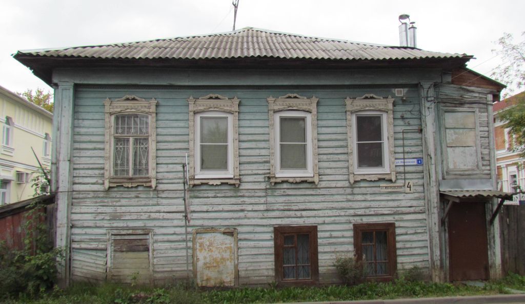 Двухэтажный деревянный дом, обшитый тесом, состоящий из двухэтажного квадратного в плане объема и северо-западной боковой пристройки с входом.1. Связь с ландшафтом и архитектурно-художественным ансамблем окружающих построек.1) расположен по красной линии улицы Ивановская;2) главный северо-восточный фасад обращен на улицу;3) рельеф спокойный.2. Стилистические особенности объекта - традиции позднего классицизма.3. Объемно-пространственная и планировочная композиция, состоящая из объемов:1) основной объем - двухэтажный без подвалов, с вальмовой четырехскатной крышей;пристройка главного входа к основному объему - двухэтажный объем с односкатной крышей;2) габарит здания:общий габарит по северо-восточному и юго-западному фасаду - 9,18 п.м., по юго-восточному фасаду - 11,70 п.м.;габарит пристройки к основному объему: по северо-восточному - 1,75 п.м., по северо-западному фасаду - 11,70 п.м.;3) высотная отметка здания от уровня низа окна первого этажа до подшива кровли основного объема - 5,48 п.м.4. Композиционное решение фасадов:1) главный (северо-восточный) фасад: 4-е оси оконных проемов основного объема; узкая пристройка - 1-а ось проемов;2) боковой (юго-восточный) фасад: в 5 проемов по первому этажу и три оконных проема в уровне второго этажа;3) дворовый (юго-западный) фасад: по 3 проема в уровне первого и второго этажей.5. Архитектурно-художественное оформление северо-восточного, юго-восточного, юго-западного фасадов, включая форму, размер, расстекловку и оформление оконных проемов:1) деревянная профилированная доска горизонтальной укладки в обшивке фасадов;2) лопатки с филенками на углах главного фасада и гладкие лопатки на перерубе и на дворовом фасаде основного объема;3) основной объем завершен выступающим гладким фризом, украшенным по низу скромной порезкой, карниз с выносом;4) наличники окон главного фасада второго этажа - рамочные с лучковым завершением, с боковыми «наборными» пилястрами, с профилированными сандриками, завершенные сходящимися волютами, скромные фартуки декорированные несколько суховатой объемной резьбой;5) наличник окна юго-восточного фасада второго этажа по правому флангу - рамочный с боковыми «наборными» пилястрами, с профилированным сандриком, скромный фартук декорированный несколько суховатой объемной резьбой.6) наличники окон юго-восточного и юго-западного фасадов первого и второго этажей - узкие рамочные профилированные, с нижней полочкой;7) наличники окон первого этажа главного фасада - узкие рамочные;8) профилированная деревянная лобовая доска.6. Конструктивная система и материалы строительства:1) фундаменты - ленточные, цоколь кирпичный;2) капитальные стены, материалы капитальных стен объема - сруб из бревен с остатком, пристройка входа - дощатая, обшивка - деревянная профилированная доска;3) плоская форма перекрытий;4) конфигурация крыши - вальмовая четырехскатная стропильная система с покрытием картами из кровельной стали, фальцевое соединение листов; деревянный подшив, деревянная профилированная лобовая доска;5) заполнение оконных и дверных проемов индивидуальное деревянное столярное, расстекловка в соответствие историческим образцам.7. Предмет охраны может быть изменен на основании документов или результатов историко-культурных исследований, отсутствующих при подготовке проекта предмета охраны объекта культур