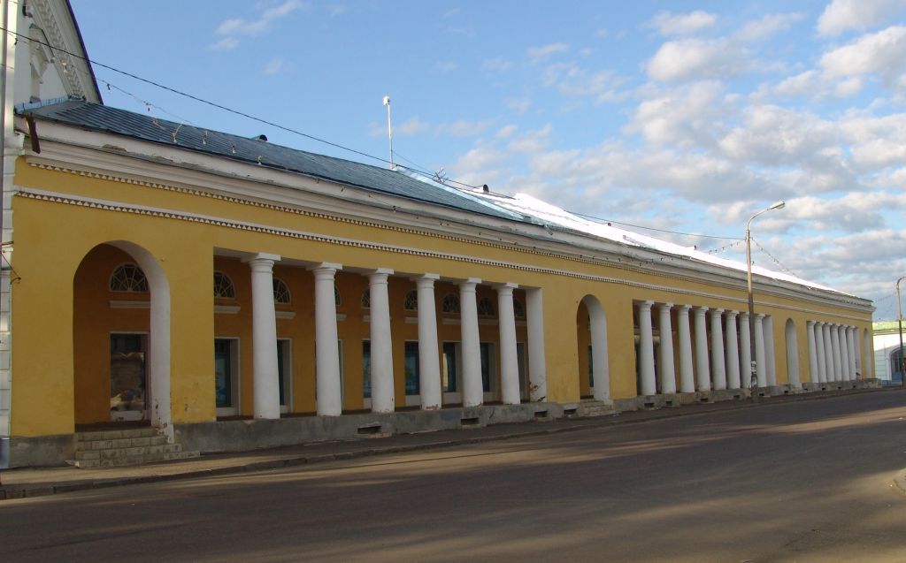 1. Предметом охраны объекта культурного наследия является одноэтажное кирпичное оштукатуренное здание с подвалом и антресолью, близкое к прямоугольному в плане со скошенным углом в северо-восточной части и экседрой в юго-западной части здания, под 3-х скатной вальмовой кровлей.2. Стилистические особенности объекта (приложение №1 к настоящему предмету охраны): пример гражданской архитектуры в стиле классицизм.3. Связь с ландшафтом и архитектурно-художественным ансамблем окружающих построек (приложение №1 к настоящему предмету охраны):1) здание расположено на территории, имеющей спокойный рельеф;2) объект расположен в пределах первого полукольца центральной части г. Костромы, в квартале застройки, ограниченном улицами Табачные ряды, Молочная гора, улицей Пряничные ряды, площадью Советской, улицей Чайковского и улицей 1 Мая;3) входит в состав объекта культурного наследия «Ансамбль Торговых рядов и других зданий центральной части города», XVIII-XIX вв.4) здание ориентировано северо-западным (главным) фасадом вдоль улицы Табачные ряды и северо-восточным фасадом примыкает к объекту культурного наследия «Здание магистрата», XVIII в.4. Объемно-пространственная и планировочная композиция сложной конфигурации в плане здания в габаритах капитальных стен и перекрытий (приложение №1 к настоящему предмету охраны):1) объект представляет собой одноэтажное, в северо-западной части двухэтажное, кирпичное здание с антресолями и подвалами, с двусветными помещениями, со скошенным торцом с северо-восточной и экседрой с юго-западной частях здания, вытянутое по оси северо-восток - юго-запад;2) общий размер в габаритах капитальных конструкций на уровне 1-го этажа по юго-восточному фасаду - 62,30 м, по юго-западному фасаду - 13,60 м, по северо-западному фасаду - 76,80 м, по северо-восточному фасаду - 17,20 м;3) высотная отметка здания от пола галереи до свеса кровли по северному углу здания - 6,10 м, по восточному углу здания 6,63 м, по южному углу здания - 6,19 м, по западному углу здания - 6,18 м;4) открытая галерея с колоннадой упрощенного тосканского ордера, несущей антаблемент и пилонами (прорезанными арками) вдоль северо-западного фасада;5) открытая галерея с колоннадой упрощенного тосканского ордера, несущей антаблемент вдоль южного фасада.5. Композиционное решение фасадов (приложение №1 к настоящему предмету охраны):5.1. Юго-западный фасад:1) симметричная композиция фасада;2) прямоугольные оконные проемы по левому и правому флангам фасада;3) одна ось проемов основной стены фасада (в уровне 1-го этажа - дверной, в уровне антресольного этажа - оконный);4) колоннада галереи тосканского ордера (2 колонны);5) галерея представляет собой полукруглую глубокую нишу - экседру;6) конфигурация и местоположение лестниц, ведущих на площадку перед галереей по левому и правому флангам фасада.5.2. Северо-западный фасад:1) симметричная композиция фасада;2) 29 осей проемов в уровне 1-го этажа и оконных проемов на уровне антресольного этажа основной стены фасада;3) оконные проемы в уровне цоколя; 4) стены-пилоны с арочными проемами по левому и правому флангам фасада и по 9-й и 21-й осям;5) колоннада галереи тосканского ордера (20 колонн), поделенная на три части (в центральной части 8 колонн, по левому и правому флангам - 6);6) местоположение и конфигурация лестниц (один марш), ведущих на галерею.5.3. Юго-восточный фасад
