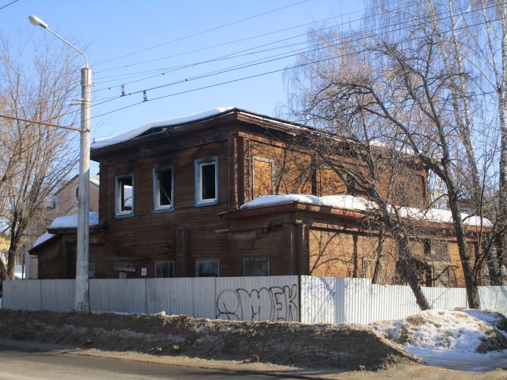 1. Связь с ландшафтом и архитектурно-художественным ансамблем окружающих построек:1) расположено по красной линии улицы Ленина;2) расположено без отступа от линии застройки улицы.2. Стилистические особенности объекта - традиции позднего классицизма.3. Объемно-пространственная и планировочная композиция:1) основной объем - одноэтажный на цоколе, прямоугольный в плане, вытянут вдоль улицы, с поперечным мезонином по центру; основной объем перекрыт крышей сложной вальмовой конструкции на три ската; мезонин - крыт крышей вальмовой конструкции на четыре ската, наличие слуховых окон;2) пристройка - прямоугольный объем со скатной крышей со стороны бокового (северо-восточного) фасада;3) габариты здания:общий габарит: основной объем здания: по главному северо-западному фасаду - 11,98 п.м., по юго-западному фасаду - 11,60 п.м.; пристройка: по северо-западному фасаду - 2,22 п.м.;высотная отметка угловой филенчатой лопатки первого этажа по дворовому фасаду от цоколя до гладкого фриза - 3,27 п.м.4. Композиционное решение фасадов:1) главный (северо-западный) фасад: основной объем в уровне цоколя 4 оконных проема; в уровне 1-го этажа 2 прясла в 3 и 2 оконных проема; мезонин - 3 оконных проема;2) боковой (юго-западный) фасад: в уровне цоколя основного объема 2 оконных проема; в уровне 1-го этажа 1 оконный проем и 1 дверной проем; мезонин - 3 прясла, по 1 оконному проему в каждом;3) дворовый (юго-восточный) фасад: основной объем в уровне цоколя - 4 оконных проема, в уровне 1-го этажа 2 прясла в 2 и 3 оконных проема; мезонин - 3 проема; пристройка -1 проем;4) боковой (северо-восточный) фасад: основной объем - мезонин в 3 прясла по 1 оконному проему в каждом; пристройка - 1 дверной проем.5. Архитектурно-художественное оформление фасадов, включая форму, размер, расстекловку и оформление оконных проемов:1) деревянная доска горизонтальной укладки в обшивке фасадов основного объема, мезонина и пристройки;2) пилястры с филенками фиксируют углы основного объема в уровне 1-го этажа и делят северо-западный и юго-восточный фасады;3) пилястры с филенками фиксируют углы мезонина и делят юго-западный и северо-восточный фасады;4) мезонин завершен фризом, профилированным венчающим карнизом с резным декором;5) мезонин по главному фасаду завершен фризом с растительным орнаментом объемной резьбы, включающим мотивы переплетающихся венков, профилированным венчающим карнизом с резным декором;6) прямоугольные очертания оконных проемов первого этажа и мезонина;7) наличники окон первого этажа и мезонина - рамочные деревянные;8) профилированная лобовая деревянная доска.6. Конструктивная система и материалы строительства:1) цоколь - кирпич, штукатурка;2) материалы наружных стен основного объема: сруб из бревен с остатком, обшивная гладкая доска;3) плоская форма перекрытий;4) вальмовая конструкция стропильных систем основного объема и мезонина с покрытием картами из кровельной стали; фальцевое соединение листов; подшив - дощатый; деревянная профилированная лобовая доска мезонина; материал отливов - листовая сталь;5) заполнение оконных и дверных проемов индивидуальное столярное;6) декоративные элементы - дерево.7. Предмет охраны может быть изменен на основании документов или результатов историко-культурных исследований, отсутствующих при подготовке проекта предмета охраны объекта культурного наследия, дающих основани