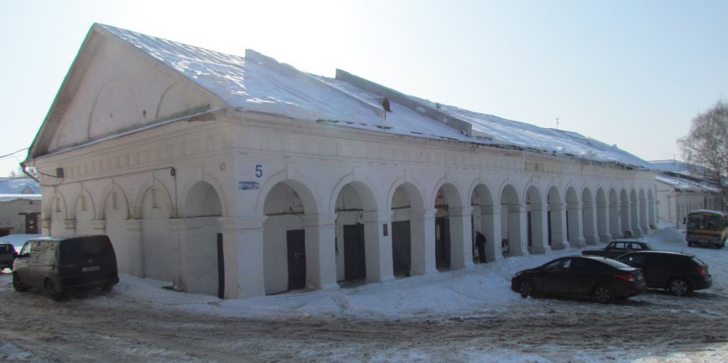 1. Предметом охраны является двухэтажное кирпичное и оштукатуренное здание с подвалами, прямоугольное в плане, под двухскатной крышей.2. Связь с ландшафтом и архитектурно-художественным ансамблем окружающих построек: 1) входит в состав Ансамбля Торговых рядов и других зданий центральной части города, XVIII-XIX вв.;2) здание - расположено на естественном перепаде рельефа местности в сторону реки Волги, вытянуто вдоль красной линии ул. Молочная гора;3. Стилистические особенности объекта: поздний классицизм.4. Объемно-пространственная и планировочная композиция: 1) здание прямоугольное в плане, двухэтажное с подвалами, под двухскатной крышей;2) общий габарит по северо-западному фасаду - 53 м., по северо-восточному - 17,5 м., юго-восточному фасаду - 52,9 м;3) крытая галерея с аркадой на квадратных в сечении высоких столбах-пилонах вдоль северо-западного фасада;4) высотная отметка кровли по северному углу - от базы пилона до подшива кровли - 5,7м; высотная отметка кровли по восточному углу - от базы пилона до подшива кровли - 5,7м; высотная отметка кровли по южному углу - от базы пилона до подшива кровли - 5,8м; высотная отметка кровли по западному углу - от базы пилона до подшива кровли - 5,8м.5. Композиционное решение фасадов:1) северо-западный фасад:симметричная композиция;16 осей проемов, соответствующих аркам крытой галереи;2) северо-восточный фасад:5 осей: 4-е оси фасада с аркатурой, по центру каждой арки утроены ниши в уровне 2-го этажа; 5-я ось - арочный проем с правого фланга фасада, ведущий на галерею;фасад завершен треугольным фронтоном с 3-мя полуциркульными нишами;3) юго-восточный фасад.симметричная композиция;16 осей проемов (в уровне подвалов, 1-го и 2-го этажей), соответствующих аркам аркатуры;4) юго-западный фасад:арочный проем с левого фланга фасада, ведущий на галерею (местоположение);фасад завершен треугольным фронтоном.6. Архитектурно-художественное оформление фасадов, включая форму, размер и оформление оконных и дверных проемов:1) северо-западный фасад:гладкий цоколь с переменной высотой;крытая арочная галерея на пилонах подпружными арками;пилоны галереи с постаментами и ступенчатыми импостами, украшенные поясками иоников (приложение №2 к настоящему предмету охраны, рис.3,4);широкие профилированные, тянутые архивольты завершенные клинчатыми замковыми камнями, обрамляющие арочные проемы галереи (приложение №2 к настоящему предмету охраны, рис. 6);антамблемент с метопно-триглифным фризом (приложение №2 к настоящему предмету охраны, рис.1);прямоугольные очертания проемов в уровне 1-го этажа; профилированный междуэтажный карниз в уровне 2-го этажа основной стены фасада (приложение №2 к настоящему предмету охраны, рис.9);16 полуциркульных ниш с оконными проемами в уровне 2-ого этажа основной стены фасада;лучковое очертание проемов основной стены фасада в уровне 2-го этажа;слуховые окна на скате кровли - наличие; деревянные ставни проемов 1-го этажа - наличие; тянутая потолочная падуга галереи северо-западного фасада (приложение №2 к настоящему предмету охраны, рис.8);2) северо-восточный фасад:треугольный фронтон;композиция фронтона - 3 полуциркульные ниши, центральная ниша крупнее боковых;4 ложные арки опирающиеся на пилястры с профилированным импостом и широким профилированным тянутым архивольтом завершенным клинчатым замковым камнем;профилированный д