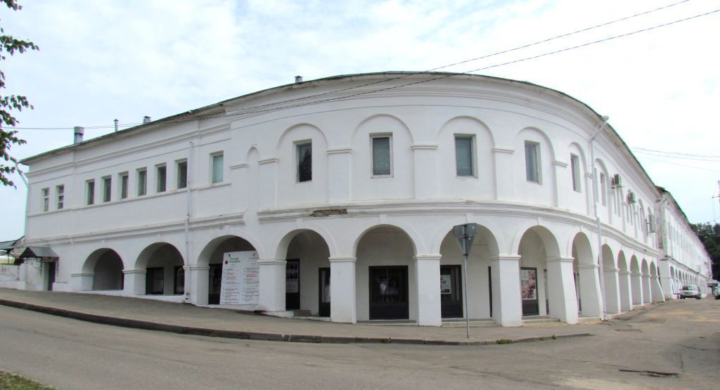 1. Связь с ландшафтом и архитектурно-художественным ансамблем окружающих построек: 1) является одним из композиционных узлов архитектурно-художественного Ансамбля Торговых рядов и других зданий центральной части города; 2) гостиный двор - корпус Б расположен на естественном перепаде рельефа местности в сторону реки Волги. 2. Стилистические особенности объекта: поздний классицизм. 3. Объемно-пространственное решение объекта (приложения №1, №2 к настоящему предмету охраны): 1) Г-образный в плане одноэтажный на цокольном этаже объем без подвала, с закругленным внешним углом. Общие габариты здания: юго-западный фасад - 35,6 п.м, северо-западный фасад - 30,05 п.м; 2) крытые галереи с аркадой на пилонах вдоль северо-западного, юго-западного (в уровне цокольного этажа) и северо-восточного (в уровне основного первого этажа) фасадов; 3) вальмовая крыша с закругленным внешним углом. 4. Архитектурно-художественное оформление фасадов: 1) композиция северо-западного фасада в два уровня за счет естественного перепада рельефа местности: нижний уровень в две секции (первая - в 1 дверной проем; вторая представлена 3-мя арками крытой галереи и стеной основного фасада в 6 прямоугольных оконных проемов, образующих 3 пары, оси которых соответствуют осям арок крытой галереи); открытая арочная галерея: 3 арки, опирающиеся на четырехугольные немного расширяющиеся книзу пилоны со ступенчатым импостом (приложение №3 к настоящему предмету охраны - импост, рис.8) и широким архивольтом, завершенным клинчатым замковым камнем; галерея с подпружными арками; двухчастный межэтажный карниз (приложение №3 к настоящему предмету охраны - карниз, рис.6); верхний уровень - две секции: первая секция - трехступенчатый фасад, сдвинутый вовнутрь относительно линии фасада; на фасаде 9 прямоугольных оконных проемов с неравнозначными простенками между ними (2 окна на угловой секции, 6 окон на центральной секции, 1 окно на третьей секции); профилированный поясок - под окнами (приложение №3 к настоящему предмету охраны - поясок, рис.7); фасад венчает аттиковый ярус с неполным антаблементом (приложение №3 к настоящему предмету охраны - аттиковый ярус, рис.4); вторая секция - поле фасада соответствует плоскости стены нижнего уровня; секция решена в виде плоской арочной ниши без проема (арка опирается на лопатки, в местах их стыковки импост (приложение №3 к настоящему предмету охраны - импост, рис.9), в основании ниши - разрыв двухчастного межэтажного карниза); фасад венчает антаблемент (приложение №3 к настоящему предмету охраны - антаблемент, рис.2); 2) северо-восточный фасад сложной конфигурации, состоит из торцевого фасада, обращенного на сквер между Мучными и Красными Торговыми рядами и фасада, обращенного на Красные Торговые ряды: торцевой фасад - двухуровневый из-за естественного перепада рельефа местности, глухой; в верхней части стены стыкуется аттиковый ярус с неполным антаблементом и антаблемент (приложение №3 к настоящему предмету охраны - аттиковый ярус с неполным антаблементом, рис.3); на скате крыши по центру - выносное слуховое окно; фасад, обращенный на Красные Торговые ряды - одноуровневый, с 5 арками открытой галереи и основной стеной фасада; стена основного фасада в 10 прямоугольных проемов с неравнозначными простенками между ними; выносное слуховое окно - на скате крыши; открытая ароч