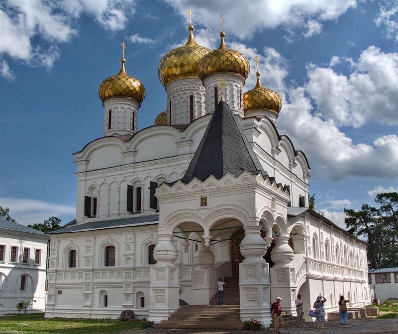 1. Месторасположение, роль и градостроительные характеристики: 1) здание является частью ансамбля - объекта культурного наследия федерального значения «Ансамбль Ипатьевского монастыря», XVI-XIXвв.: Стены и башни монастыря, XVI – XIX вв.;Троицкий собор, 1652 г.; Звонница, 1647г.;Архиерейский корпус, XVI-XIX вв.;Палаты бояр Романовых, XVI-XIX вв.;Братский корпус, XVI-XIX вв.;Корпус над погребами, XVI-XIX вв.;Свечной корпус, XVI-XIX вв.;Богадельня, XVI-XIX вв.;Архиерейский сад, XIX в.;Церковь Спаса Преображения (деревянная), XVII в.;2) собор расположен в центральной части Старого города Ипатьевского монастыря (приложение №1 к настоящему предмету охраны).2. Стилистические особенности объекта: характерный пример культового зодчества ярославской архитектурной школы 1-й пол. XVII в. (приложение №2 к настоящему предмету охраны).3. Объемно-пространственная и планировочная композиция здания (приложение №3 к настоящему предмету охраны): 1) объемно-пространственная композиция здания, образованная следующими объемами:прямоугольным в плане четырехстолпным двусветным четвериком (восточные столбы устроены в алтарной преграде), с позакомарным покрытием, завершенным пятью чешуйчатыми луковичными главами на цилиндрических световых барабанах;трехапсидным алтарем, примыкающим к четверику с востока, апсиды перекрыты пологими кровлями криволинейного очертания;одноэтажная закрытая галерея, примыкающая к четверику с севера, запада и юга под скатной кровлей; придел Михаила Малеина с кровлей на два ската по всем четырем сторонам, завершенный луковичной главкой на глухом цилиндрическом барабане, примыкающий к торцу южной галереи;высокое одновсходное крыльцо-рундук с пригласительными маршами на три стороны, завершенное шатром, примыкает к северо-западному углу галереи;2) подклет под всем объемом храма.4. Архитектурные характеристики фасадов (приложение №4 к настоящему предмету охраны): 1) северный фасад:композиция фасада, построенная на доминирующем объеме двусветного четверика, поставленного на высокий подклет и завершенного позакомарным покрытием, увенчанным пятью луковичными главами с крестами на световых цилиндрических барабанах (центральная глава - более массивная, с узкими прорезями шести окон, угловые барабаны прорезаны узкими окнами по сторонам света); плоскость фасада в уровне второго света прорезают четыре узких оконных арочных проема; плоскость фасада в уровне первого яруса скрыта галереей, к которой с запада примыкает крыльцо-рундук, завершенное шатром; с востока к объему четверика примыкает трехапсидный алтарь;месторасположение, размер и форма оконных и дверных проемов четверика (перспективный портал входа во втором прясле в уровне первого яруса; четыре оконных проема в уровне второго света); месторасположение, размер и форма оконных и дверных проемов подклета (пять прясел в плоскости фасада: первое - глухое; во 2-м, 3-м и 4-м прясле по одному оконному проему; дверной проем между 3-м и 4-м пряслом; 5-е прясло (под объемом крыльца) - глухое);месторасположение, размер и форма оконных и дверных проемов галереи (пять прясел в плоскости фасада: по одному оконному проему в 1-м, 2-м, 3-м, 4-м прясле; дверной проем - в 5-м прясле);месторасположение, размер и форма крыльца по оси дверного проема галереи;размер и форма кровель четверика, алтаря, галереи, крыльца;месторасположение, размер и фор