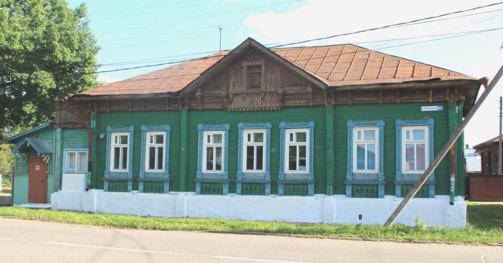 1. Месторасположение, роль и градостроительные характеристики (приложение №1 к настоящему предмету охраны): поставлен по линии застройки, главным (северо-западным) фасадом в сторону ул. Комсомольской.2. Стилистические особенности объекта (приложение №2 к настоящему предмету охраны): пример жилого дома периода эклектики. 3. Объемно-пространственная и планировочная композиция здания (приложение №3 к настоящему предмету охраны): 1) Г-образный в плане одноэтажный объем под вальмовой крышей, состоящий из: Г-образного в плане основного объема здания под вальмой крышей; близкого к прямоугольному в плане объема сеней под скатной крышей, примыкающего со стороны северо-восточного фасада; 2) месторасположение размер и форма первоначальных проемов в капитальных стенах здания; 3) месторасположение светелки по северо-восточному фасаду;4) месторасположение лестницы в светелку.4. Членение фасадов (приложение №4 к настоящему предмету охраны): 1) северо-западный (главный) фасад: одна ось объема сеней; симметричная композиция фасада основного объема здания в семь осей оконных проемов, разделенного перерубами на три прясла в 2-3-2 оси проемов; треугольный фронтон над центральным пряслом; 2) юго-западный (боковой) фасад: один оконный проем в выступающей части фасада; три оконных проема в дворовой части фасада; 3) юго-восточный (дворовый) фасад: четыре проема в плоскости фасада основной части здания, разделенного перерубом на два прясла: два оконных проема в первом прясле и оконный и дверной проемы во втором прясле; один оконный проем в плоскости фасада дворовой части; дверной проем в объеме сеней;4) северо-восточный (боковой) фасад: одноэтажный объем сеней под скатной кровлей с возвышающимся объемом светелки с одним оконным проемом, и завершенной треугольным фронтоном.5. Декоративно-пластическое оформление экстерьера (приложение №5 к настоящему предмету охраны): 1) гладкий выступающий цоколь основного Г-образного объема; 2) профилированный тес горизонтальной укладки по северо-западному фасаду здания; наличие обшивки Г-образного основного объема;3) гладкие пилястры по углам и на перерубах фасадов основного объема здания; украшенные резьбой в верхней части пилястр по северо-западному (главному) фасаду и на западной пилястре в выступающей части юго-западного фасада; углы пилястр декорированы фасками;4) широкий фриз венчающего карниза, ограниченный профилированной полочкой и раскрепованный фигурными резными кронштейнами; плоскость фриза украшена многослойной пропильной резьбой и горизонтальными профилированными филенками по северо-западному фасаду и выступающей части юго-западного фасада и угловая часть юго-восточного фасада; 5) широкий гладкий фриз по юго-восточному фасаду и южной части юго-западного фасада; 6) наличники с глухой геометрической резьбой и накладными элементами в верхней части, опирающиеся на профилированные подоконные полочки оконных проемов северо-западного фасада; резной декор стоек, поддерживающих подоконные полочки; подоконные горизонтальные ниши украшены пропильным резным декором, поставлены на профилированное основание;7) наличие рамочных профилированных наличников, опирающихся на профилированные подоконные полочки оконных проемов юго-западного и юго-восточного фасадов; 8) трехчастное прямоугольное чердачное окно (