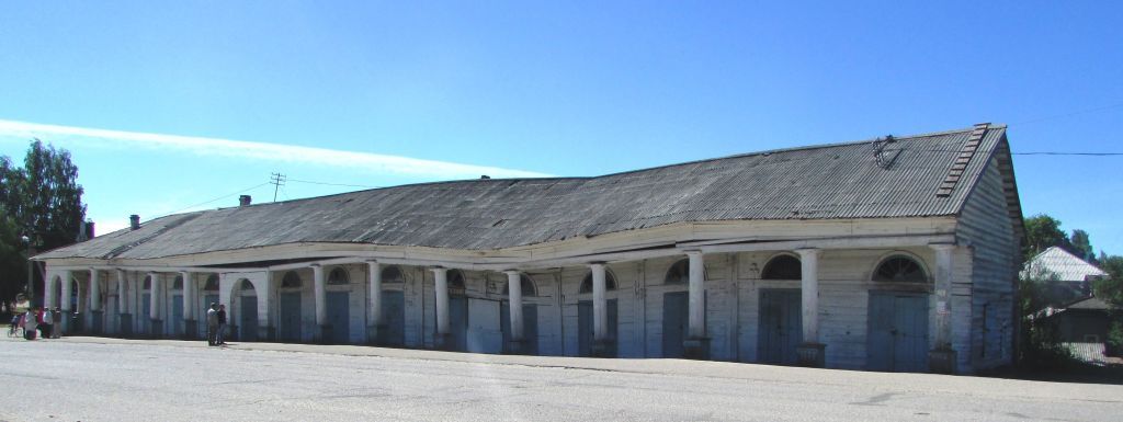 1. Предметом охраны объекта культурного наследия федерального значения «Ансамбль Торговых рядов (деревянные), XVIII – XIX вв.: корпус №2», расположенного по адресу: Костромская область, г. Солигалич, является одноэтажное с антресолями здание на цокольном этаже первоначально торгового назначения (согласно приложению к настоящему предмету охраны).2. Стилистические особенности объекта: провинциальный классицизм.3. Связь с ландшафтом и архитектурно-художественным ансамблем окружающих построек:1) объект в составе ансамбля торговых рядов;2) объект является неотъемлемой частью застройки центральной части города Солигалич, обращен главным (северо-восточным) фасадом на улицу Коммунистическую, расположен в юго-западной части Красной площади, стоит на рельефе с понижением в сторону ручья.4. Объемно-пространственная и планировочная композиция здания в габаритах капитальных стен и перекрытий:1) цокольный, близкий к прямоугольной форме в плане этаж, включающий 4 внутренние капитальные поперечные стены и попарно поставленные столбы с деревянной забиркой; 2) наземный объем сруба с антресолями, близкий к прямоугольной форме в плане, рубленный из бревен «в лапу», за исключением северо-западного фасада, где сохранены выпуски, при среднем диаметре бревна 27 см;3) трехскатная слеговая крыша с вальмой по юго-восточному фасаду, с формированием вдоль юго-восточного и северо-восточного фасадов объема антресолей;4) секционная планировка объема: пятнадцать исторических секций торговых лавок, включающих более позднюю встройку в осях «1-2», примерно одинаковой ширины с подвальными и антресольными складскими помещениями, с учетом объединения попарно секций в осях «7-9» и «14-16» в два расширенных объема, имеющих отдельные выходы со стороны площади на галерею;5) галерея вдоль северо-восточного фасада, опирающаяся на цельнобревенчатые колонны и пилоны с арочными проемами по осям поперечных стен.5. Композиционное и архитектурно-художественное решение фасадов, все подлинные конструкции, пространственные характеристики каждого из объемов, входящих в состав памятника, пространственные связи:1) композиция главного (северо-восточного) фасада, обусловленная шагом колонн и пилонов галереи:кирпичный цоколь, составляющий лицевую версту наружной стены выше уровня земли, с известковой обмазкой, устроенный на перепаде рельефа;пятнадцать торговых лавок объема здания, по центру каждой лавки: входной проем с двустворчатыми филенчатыми дверями с остеклением и ставнями с коваными засовами; над ним - полуциркульный оконный проем с веерной расстекловкой и металлической кованной решеткой (не совпадает с рисунком оконных переплетов) с внутренней стороны окна антресоли;обшивка фасада и пилонов тесом горизонтальной укладки;пилястры на фасаде по осям поперечных стен объема здания;первая и седьмая секции открытой галереи представлены пилонами с арочными проемами;двенадцать колонн дорического ордера с профилированными базами и капителями в галерее;высокий антаблемент галереи с декоративными накладными элементами карниза, составляющего подшивку свеса кровли;деревянная лестница с перилами и резными балясинами, ведущая на галерею;2) композиция бокового (юго-восточного) фасада:кирпичный цоколь, составляющий лицевую версту наружной стены выше уровня земли, с известков