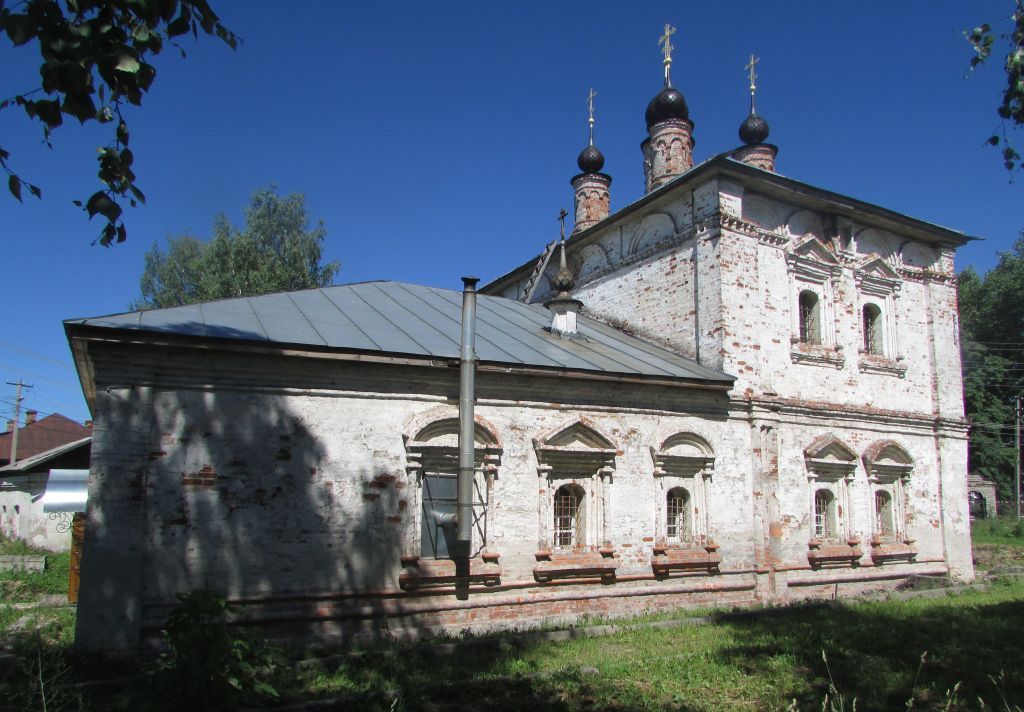 Местоположение здания, являющегося неотъемлемой частью комплекса исторической застройки и наиболее значимым объектом архитектурного ансамбля, расположенного в центре города Галича. Богоявленская церковь находится в глубине участка, ограниченного пересечением улиц Кооперативной (ранее - ул. Усольская), Свободы (ранее - ул. Успенская; ул. Романовская), Подбельского (ранее - ул. Богоявленская) и переулка Подбельского.Объемно - пространственная композиция в габаритах капитальных стен и перекрытий:-форма и габариты здания в плане; планировочная структура - трехчастная, осевая, симметричная; габариты здания в плане - 21,40x14,42 м (без апсиды);-первоначальные и исторические параметры и формы основных объемов здания: двухэтажной апсиды, двухэтажного прямоугольного бесстолпного четверика, увенчанного пятью луковичными главами на высоких кирпичных барабанах и одноэтажной прямоугольной двухстолпной трапезной;-пропорциональные соотношения основных объемов; силуэт здания.Композиция и архитектурно-художественное оформление:-абсида: прямоугольная в плане двухэтажная апсида с востока имеет полукруглый выступ и примыкает к восточному фасаду четверика по центральной линии; габариты, форма и расположение оконных проемов;декор: кладочные наличники арочных оконных проемов (в уровне второго этажа оформлены муфтированными колонками), раскрепованный междуэтажный карниз под металлическим отливом, поясок над отливом в виде тяги из поребрика, пропущенного между двух полочек, венчающий карниз, полуколонны с капителями, отсеченными валиками;, цоколь обозначен узким рельефным пояском по всему периметру храма;-четверик: прямоугольный в плане, слегка вытянутый по оси север-юг, двухсветный, в две оси по северному и южному фасадам, разделен на два яруса раскрепованным карнизом под металлическим отливом; параметры (расположение, профиль, ширина, глубина, очертания) оконных и входных (вуровне второго этажа) проемов, раскрепованный венчающий карниз; габариты, форма и декор 5 высоких барабанов под луковичными главками.декор: углы фасада закреплены широкими лопатками, (отсутствие лопатки по левому флангу в уровне первого этажа сообщает композиции асимметричный акцент, который усиливают сдвинутые к центру сдвоенные полуколонки с выпущенным между ними углом); кладочные колончатые наличники с профилированными подоконниками и сандриками, которые в уровне второго этажа прерывают поребрик и врезаются в пояс ложных закомар, завершающих плоскость стены;- трапезная: одноэтажная квадратная в плане трапезная, в три оконных оси по северному и южному фасадам, композиционно смещенных вправо (на южном фасаде) и влево (на северном фасаде); первоначальные габариты, форма и расположение оконных проемов;декор: кладочные колончатые наличники с профилированными подоконниками и чередующимися треугольными и лучковыми сандриками; раскрепованный венчающий карниз;кровля: вальмовая крыша четверика, увенчанная пятью луковичными главами на высоких кирпичных барабанах (главы завершаются семиконечными металлическими коваными крестами с барочным орнаментом по просечному железу); вальмовая крыша трапезной с двумя небольшими главами над придельными алтарями; полусферическая крыша апсиды (небольшая главка на невысоком деревянном барабане утрачена); материал - металл;