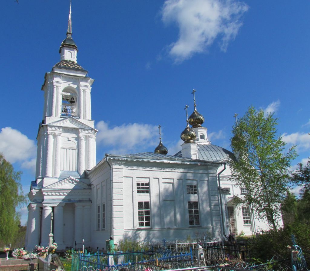 Предметом охраны является:1.Связь с ландшафтом и архитектурно-художественнымансамблем окружающих построек:1)является главной частью сельского храмового комплекса;2)расположен на высоком крутом берегу реки Письмы, играет роль вертикальной доминанты окружающего ландшафта.2.Стилистические особенности объекта: классицизм.3.Объемно-пространственная и архитектурно-художественная композиция объекта:1)протяженность основных объемов (апсида, двусветный четверик, двусветная трапезная, колокольня) по оси восток-запад; трапезная совмещена с приделами;2)двусветный четверик храма, завершенный пятью восьмигранными барабанами (центральный световой крупнее глухих угловых) с луковичными главками;3)зауженная по отношению к четверику прямоугольная апсида со скругленными углами;4)поперечно вытянутая трапезная с двумя боковыми приделами;5)пониженные округлые апсиды приделов, закрывающие часть фасадов четверика;6)выраженный невысокий цокольный ярус;7)колокольня, состоящая из трех ярусов-четвериков, увенчанная глухим барабаном со срезанными углами и невысоким шпилем.4.Внутренняя планировка:1) алтарь соединен с основным помещением храма широким арочным проемом;2)помещения храма и трапезной соединены узким арочным проемом, расположенным на продольной оси церкви;3)трапезная разделена столбами на центральное помещение и два боковых придела.5. Декоративные детали убранства фасадов здания:1)портик из четырех пилястр упрощенного тосканского ордера, несущих антаблемент, завершенный треугольным фронтоном со стороны южного и северного фасадов четверика;2)неполный антаблемент портика с гладким фризом и ступенчатым карнизом, дополненным сухариками, переходящий в венчающий карниз фасадов четверика, отделяющий его от верхней «аттиковой» части;3)ступенчатый карниз с сухариками внутри поля фронтона;4)прямоугольные горизонтальные подоконные филенки под окнами первого света четверика;5)круглые филенки между окнами первого и второго света;6)рустованные лопатки, закрепляющие углы фасадов трапезной, совмещенной с приделами;7)подоконные тяги под окнами первого света фасадов трапезной, совмещенной с приделами;8)прямоугольные ниши, в которые вписаны окна первого и второго света фасадов трапезной;9)квадратные ниши над окнами первого света, по отдельным осям заменяющие окна второго света на фасадах трапезной;10)вертикальные межоконные ниши на два этажа фасадов трапезной;11)венчающий карниз трапезной в виде упрощенного антаблемента, состоящего из гладкого фриза и ступенчатого карниза;12)простой ступенчатый карниз, венчающий фасады апсид храма и приделов (трапезной);13)арочные ниши окон центрального барабана;14)квадратные глухие ниши на гранях боковых барабанов;15)профилированные венчающие карнизы центрального и обеих частей боковых двухчастных барабанов;16)трехчастный карниз в основании центрального барабана;17)решетчатые двустворчатые двери входных проемов четверика с двускатными металлическими зонтами, с ажурным рисунком кронштейнов и тимпана;18)декоративная композиция фасадов колокольни:18.1)сдвоенные приземистые колонны (в первом ярусе), полуколонны (во втором ярусе) и трехчетвертные колонны (в третьем ярусе) упрощенного тосканского ордера, акцентирующие углы четвериков колокольни;18.2)массивный антаблемент, состоящий из прерванного ступенча