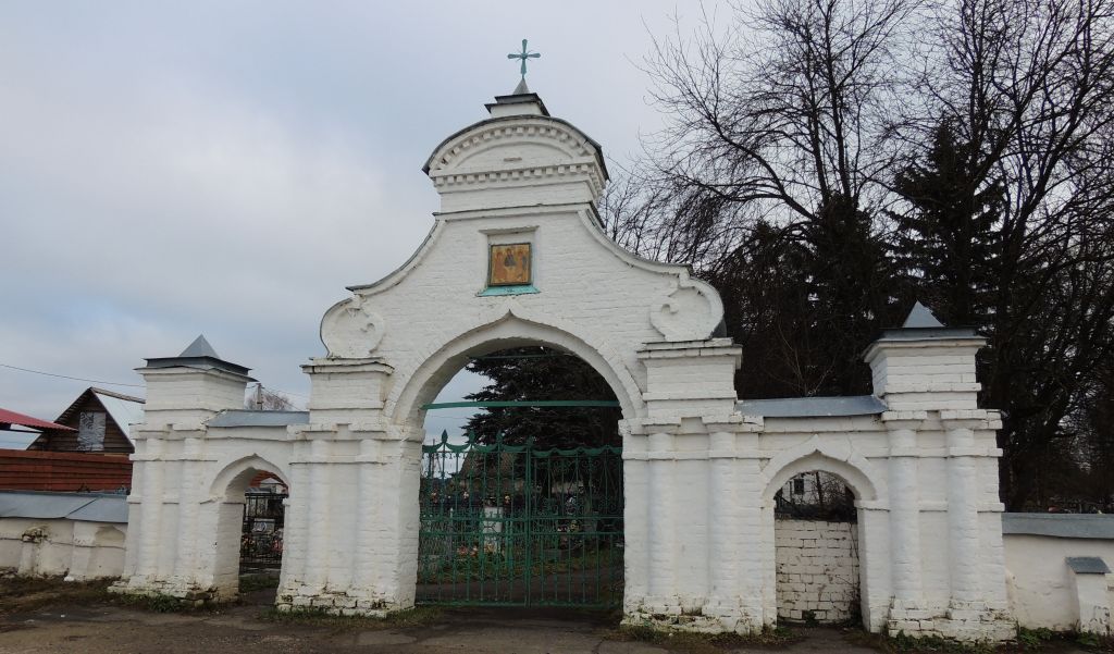 Предметом охраны являются:1.Связь с ландшафтом и архитектурно-художественным ансамблем окружающих построек:1)местоположение объекта, являющегося неотъемлемой частью ансамбля Троицкой церкви;2)ограничивает территорию Троицкой церкви и приходского кладбища.2.Объемно-пространственная и архитектурно-художественная композиция объекта:1)многоугольная в плане ограда в виде невысокой глухой стенки с двускатным покрытием;2)трехчастная композиция западных ворот: центральные двустворчатые ворота, выполненные в виде арки, фланкированные прямоугольными в сечении пилонами, прорезанными арочными проемами калиток.3.Декоративные детали убранства фасадов:1)композиция внешнего фасада ограды:1.1)регулярно повторяющиеся, сгруппированные по пять несколько пониженные профилированные столбики, чередующиеся со столбиками большего размера, покрытые на один скат;1.2) квадратная в сечении башенка ограды под четырехскатной кровлей;2)композиция внешнего (западного) фасада ворот:2.1)килевидные архивольты арочных проемов;2.2)парные полуколонны, фланкирующие въездную арку ворот и арки калиток;2.3)венчающий антаблемент над колоннами;2.4)венчающая часть над въездной аркой, по бокам ограниченная крупными валютообразными элементами, на которые опирается венчающий антаблемент с лентой сухариков и лучковым фронтоном;2.5)прямоугольный киот над въездной аркой с живописным изображением;2.6)профилированный карниз с лентой сухариков по внутреннему полю фронтона;2.7)венчающий крест в завершении фронтона центральной въездной арки;2.8)арочный проезд с двустворчатыми ажурными металлическими воротами;2.9)ажурное металлическое заполнение арочных проемов калиток;4.Конструктивные особенности:1)полотнища металлических створок ворот и калиток;2)металлическая кровля, защищающая от разрушения кирпичную кладку ограды и ворот;3)четырехскатные металлические покрытия двух пилонов по левому и правому флангам западных ворот.5.Материалы строительства и отделки фасадов:1)кирпич, обмазка, ажурное металлическое заполнение ворот и калиток, железные листы.Предмет охраны уточняется при проведении научно-изыскательских, реставрационных, проектных и других работ.