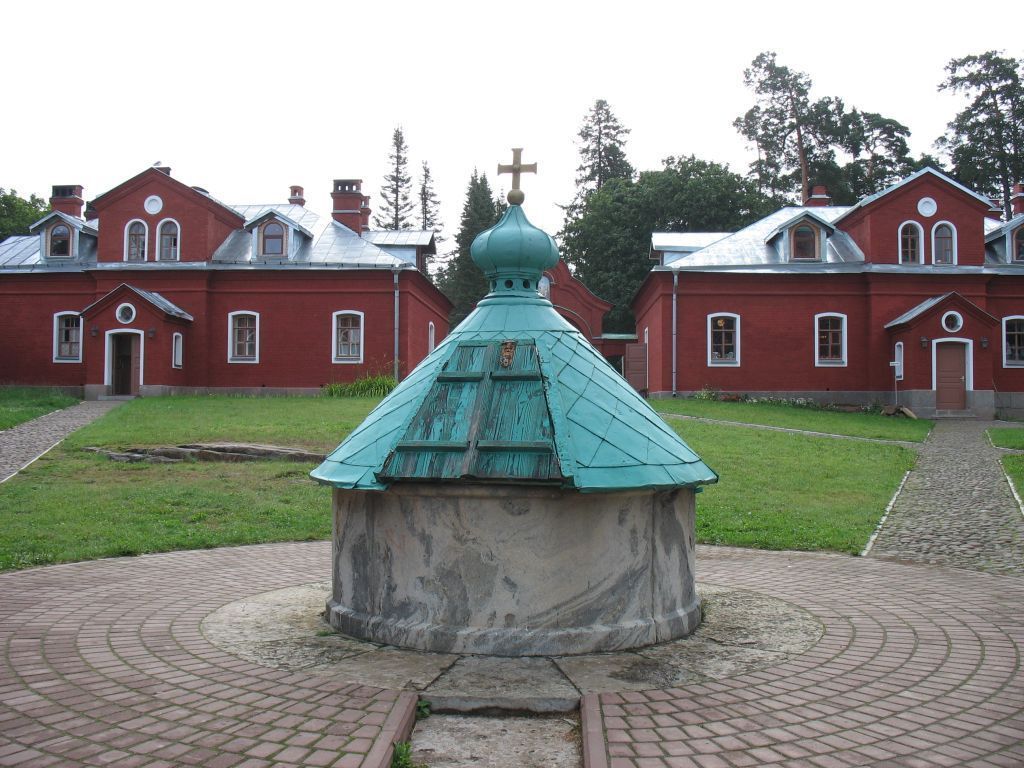 Градостроительные характеристики:- расположение во дворе Воскресенского скита между Воскресенской церковью и трапезным корпусом.Объемно-планировочная структура надземной части:- исторически сложившаяся объемно-планировочная структура: ствол колодца обрамлен кольцевым парапетом из профилированных мраморных блоков и накрыт конусообразным колпаком, увенчанным восьмигранной главкой с крестом на восьмигранном барабане. Архитектурно-художественные и конструктивные характеристики надземной части:- материал и конструкция парапета (профилированные тесаные блоки карельского полосчатого мрамора), отмостки по периметру (тесаные лещадные плиты);- конфигурация (конусообразная форма), высотные отметки и угол наклона крыши-колпака, конструктивное устройство и материал подкровельных конструкций (деревянные стропила), характер окрытия металлической кровли («в шашку», уменьшающимися к вершине конуса картинами); - габаритные размеры и высотные отметки, конструктивное устройство и материал каркаса и окрытия восьмигранной луковичной главки с крестом на восьмигранном барабане. Декоративное оформление надземной части:- конфигурация и размеры, материал (порода камня), характер обработки поверхности каменных блоков парапета и отмостки, профили декоративного оформления парапета (цоколя и декоративного полувалика верхнего обреза); - конфигурация и рисунок металлического окрытия колпака: «в шашку» с уменьшающимися к вершине конуса картинами; трапециевидное очертание и характер заполнения водоразборного проема;- конфигурация и характер металлического окрытия главки и барабана, включая профили разделок (конфигурация и размерные параметры креста подлежат уточнению проектом).*Предмет охраны может быть уточнен по результатам дополнительных натурных и архивных исследований.