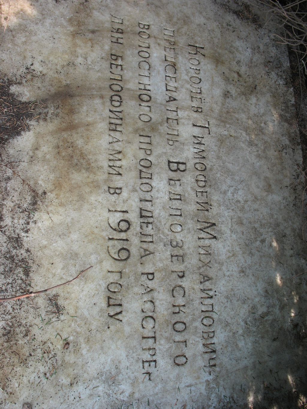 Могила члена Ведлозерского волисполкома Тимофея Михайловича Королева, расстрелянного белофиннами 24 апреля 1919 г.