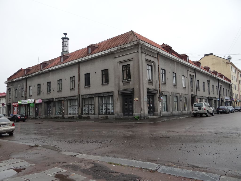 Градостроительная роль объекта: Обусловлена угловым положением здания в планировочной структуре улиц, расположением по красным линиям ул. Кирова и ул. Комсомольской. Элемент застройки исторического центра г. Сортавала. Объемно-планировочная структура и архитектурное решение объекта, в том числе:Исторически сложившаяся объёмно-планировочная структура: двухэтажное, кирпичное, оштукатуренное здание, представляющее собой «Г»-образный в плане объём в виде двух вытянутых параллелепипедов под двухскатной крышей с асимметричными скатами и рядом слуховых окон. Симметричная композиция фасада, выходящего на ул. Кирова, с осью, проходящей через центральный вход в здание, с двумя входами на флангах здания, с расположенными между ними широкими витринными окнами на первом этаже и с одинаковыми окнами второго этажа, расположенными на равных расстояниях друг от друга.Фасад, выходящий на ул. Комсомольскую, со сквозным проходом на правом фланге фасада, с витринными окнами, расположенными между четырьмя одинаковыми дверными проемами и с двумя вытянутыми по вертикали окнами, объединёнными общим массивным козырьком на 1 этаже, окнами второго этажа, расположенными на равных расстояниях друг от друга.Расположение, габариты, относительные высотные отметки и конфигурация цоколя, оконных и дверных проемов, карниза кровли, конька крыши, порталов входов, слуховых окон.Исторические двери и рисунок филёнок полотен.Расположение, габариты, форма оконных и дверных проёмов, и характер расстекловки оконных заполнений.Местоположение, профиль сечения декоративных элементов: -массивные раскрепованные козырьки, устроенные над входами в здание, а также над двумя окнами первого этажа на фасаде по ул. Комсомольская и над расположенным над ними окном второго этажа;- выступающие из плоскости стены рамки обрамления окон первого этажа;-характер оформления (исторический профиль сечений) подкровельного карниза;-восьмигранный стеклянный фонарь на крыше здания;- перспективные прямоугольные с уступами порталы входов и окон второго этажа над ними.Материал и конфигурация водосточных труб (квадратного сечения).Конструктивные особенности объекта: Конструкция и материал несущих стен (кирпичные).Характер отделки фасадов оштукатуренных стен («под шубу») терразитовой штукатуркой.Цветовое решение окраски стен здания (темно-серый цвет).Конструкция, материал исполнения гранитного цоколя.Конструкция, конфигурация, высотные отметки двухскатной с асимметричными скатами крыши. Характер покрытия (черепица, металл).Материал и характер исполнения террацевых полов.Железобетонные одно- и двухмаршевые лестницы. Крыльца из гранитных блоков. Элементы внутреннего убранства и интерьеров:Анфиладная планировка помещений, на втором этаже входы в квартиры осуществляются из четырех лестничных клеток. Четыре лестничные клетки, располагающиеся по две в каждой из частей дома.В помещении бывшего банка:портал двери главного входа с профилированным карнизом в верхней части, галтели по верху колон, тяги и профилированный карниз стен по периметру помещения зала, деревянная, выполненная из дуба стойка между колоннами, имеющая различные по высоте и длине отсеки для хранения документации с дверцами типа купе с лицевой частью, оформленной снизу поясом с геометрическими элементами, 