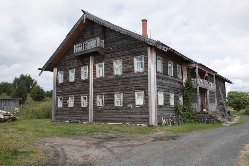Градостроительная характеристика: местоположение в общем ряду домов деревенской улицы, замыкая жилую застройку деревни с северной стороны, ориентация лицевого, торцевого фасада на юг, на деревню.Архитектурные и конструктивные характеристики:общее объемно-планировочное решение дома, сформированного по типу дома-комплекса «брус с уширенным сараем», с расположенными по одной оси жилой и хозяйственной частями. Габариты и очертания по периметру бревенчатых капитальных стен, расположение и габариты внутренних капитальных стен и перерубов;этажность – 2 этажа, со светелкой в пространстве чердака;архитектурное решение фасадов в отношении расположения и основных габаритов дверных и оконных проемов, крыльца, взвоза на сарай; стены - рубленые из круглых бревен «в обло». Высота сруба в отношении количества бревен в продольных и поперечных стенах, включая фронтоны до конька крыши; автономные срубы хлевов, опирание сруба сарая на столбы из бревен-быков – расположение, количество столбов, характер сопряжения бревен стен со столбами; крыша: двускатная симметричная над жилой частью и ассиметричная над хозяйственной. Общий конек над всем домом, угол наклона скатов. Тип крыши – безгвоздевая, с потоками, уложенными по курицам, количество и места установки куриц. Кровля дощатая, с шеломом по коньку, форма шелома. Слеги – редко врубленные, количество слег и величина выпусков слег по торцам крыши, величина боковых свесов;крыльцо: место расположения и тип – двухъярусное крыльцо-галерея, его конструктивная основа и габариты;балкон на фронтоне главного фасада, место расположения, габариты, конструкция, тип балкона – открытый, на выпусках балок, с горизонтальным основанием, отсутствие выхода на балкон;взвоз на сарай - место расположения, конструкция;окна жилой части – терхкосящатые, с подоконной доской, с сопряжением косяков под прямым углом, деревянные рамы окон, рисунок расстекловки;двери входные в сени – трехкосящатые, форма и тип сопряжения боковых косяков с вершником под прямым углом, открывание внутрь сеней, дверное полотно плотницкой работы, дощатое на шпонках;внутренние двери в капитальных стенах - трехкосящатые с сопряжением косяков под прямым углом, их расположение и габариты;ворота во двор – двухкосящатые с сопряжением косяков под прямым углом, с горизонтальным верхом проема, полотна ворот плотницкой работы, дощатые на шпонках, навеска – на жиковинах;ворота на сарай со взвоза - двухкосящатые с сопряжением косяков под прямым углом, с сегментным верхом проема, полотно ворот плотницкой работы, дощатое на шпонках, навеска – на жиковинах.Декоративные элементы:причелины: по торцам крыши на лицевом фасаде – резные, рисунок и вид резьбы, на торце хозяйственной части - гладкие дощатые;столбики крыльца-галереи – место расположения, рисунок и вид резьбы; балясины крыльца и балкона – вид резьбы, габариты;наличники на окнах жилой части – из профилированной доски рамочные. Интерьер:стены в жилой части – отёска «по-круглому»;расположение и конструкция лестницы на второй этаж, угол наклона;конструкция перекрытий – балочные с настилом из досок.Материал: несущие стены – сосновые бревна, их параметры (средний диаметр), здоровые исторические бревна. *Предмет охраны может быть уточнен по результатам дополнительных натурных и архивных исс