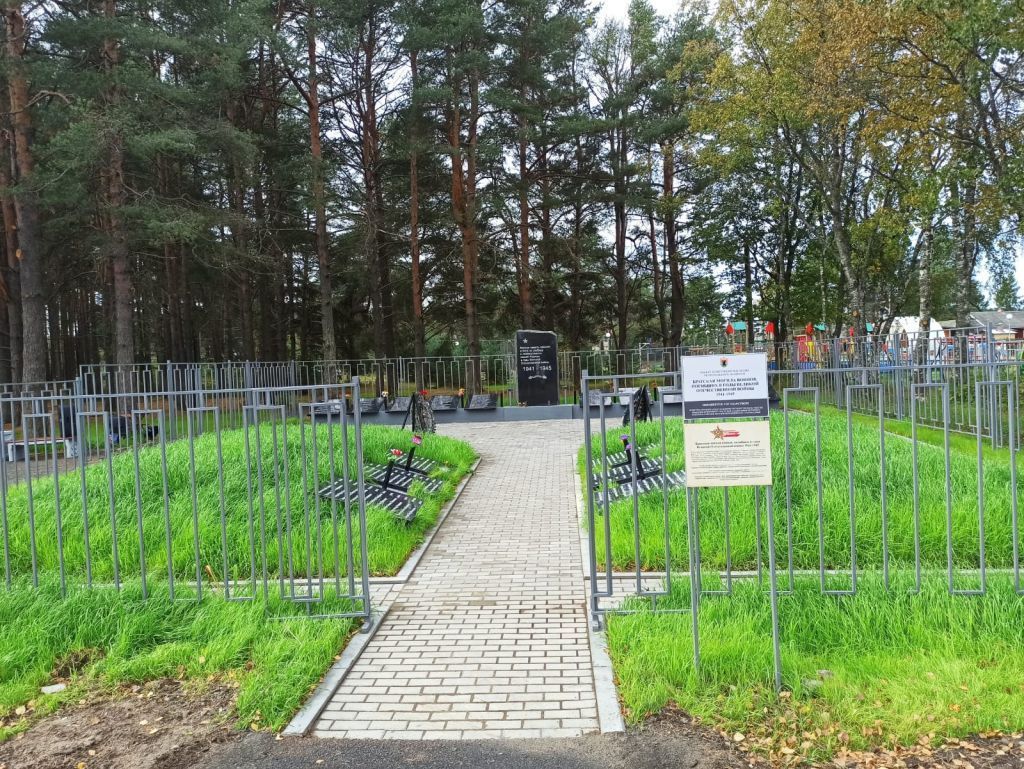 1.Местоположение могилы:на ул. Онежской, напротив домов № 71,73. Координаты захоронения: 61.617780, 34.643174.2.Объемно-пространственные характеристики объекта:Захоронение в полном объеме (от поверхности земли) на месте двух прямоугольных газонов размерами 7,6 м х 4, 9 м и 7,6 м х 5,1 м, обрамленных бетонным поребриком, на которых уложены мемориальные плиты.3.Мемориальная составляющая объекта:Сведения о захороненных воинах в соответствии с учетными данными.** В соответствии с учетной карточкой воинского захоронения Министерства обороны Российской Федерации (учетная карточка № 13 по Прионежскому муниципальному району от 2014 г.) в могиле захоронены 68 воинов, чьи имена известны, и два неизвестных воина.Предмет охраны объекта культурного наследия может быть уточнен по результатам историко-культурных и натурных исследований.