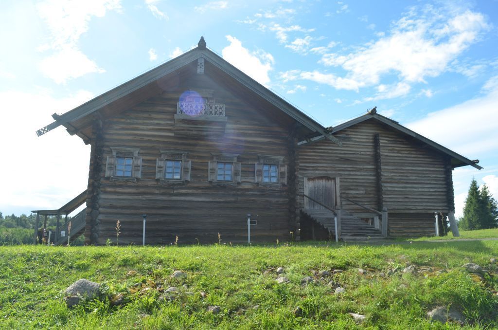 Градостроительные характеристики: местоположение – в общем ряду домов музейного сектора «Пудожский», замыкая жилую застройку с южной стороны, ориентация лицевого, торцевого фасада на восток, на улицу. Архитектурные и конструктивные характеристики:общее объемно-пространственное решение дома, сформированного по типу дома-комплекса с двухрядной связью, с расположенными параллельно «впритык» жилой и хозяйственной частями, крытыми самостоятельными двускатными крышами; жилая часть – «двухконечная», включающая две избы, соединенные сенями;габариты и очертания по периметру бревенчатых наружных капитальных стен, расположение и габариты внутренних капитальных стен и перерубов;этажность: жилая часть – 1 этаж на подклете, хозяйственная часть – 2 этажа; архитектурное решение фасадов в отношении характера стеновой поверхности – открытый бревенчатый сруб, расположения и основных габаритов дверных и оконных проемов, крыльца, взвоза на сарай, балкона на фронтоне главного фасада;стены – рубленые из круглых бревен «в обло», старая изба – с двойной припазовкой. Характер сопряжения срубов изб и сеней, срубов жилой и хозяйственной частей. Высота сруба в отношении количества бревен в продольных и поперечных стенах, включая фронтоны до конька крыши;автономные срубы хлевов хоздвора, опирание сруба сарая на столбы из бревен-быков, расположение, количество, характер сопряжения бревен стен со столбами;крыша: форма – самостоятельная над жилой частью и над хозяйственной, двускатная, симметричная, угол наклона скатов. Тип крыши – безгвоздевая, с потоками, уложенными по курицам, с дощатым покрытием, шеломом по коньку, сороками-стамиками над жилой частью; форма шелома и его резного окончания, сорок, потоков, количество и места установки куриц. Один общий поток крыш жилой и хозяйственной частей. Слеги – количество слег и величина выпусков слег по торцам крыши, величина боковых свесов, подшивка свесов крыши жилой части досками-платиком с декоративным резным подзором у внутреннего края;крыльцо: место расположения и тип – приставное, одновсходное, крытое, верхняя площадка на столбах; конструкция, форма, габариты, угол наклона лестницы крыльца, крыши, поддерживаемой столбиками; форма и габариты столбиков; ограждение – сплошное дощатое; подзоры крыльца – рисунок порезки;взвоз на сарай: место расположения и конструкция;окна жилой части: конструкция – трехкосящатые, с подоконной доской, с сопряжением косяков под прямым углом, форма косяков; рамы окон – деревянные, исторический рисунок расстекловки;двери наружные в сени – трехкосящатые, форма косяков и тип сопряжения боковых косяков с вершником под прямым углом, дверь в подклет – сопряжение косяков с вершником «на ус»; открывание дверей внутрь, дверные полотна – плотницкой работы – дощатые на шпонках, подтеска бревен у косяков – сегментная;внутренние двери в капитальных стенах – трехкосящатые с сопряжением косяков под прямым углом, их расположение и габариты, форма косяков, исторические дверные полотна;ворота в хозяйственную часть – двухкосящатые с сопряжением косяков под прямым углом, у ворот во двор – горизонтальный верх проема, у ворот на второй этаж на сарай – с сегментной подтеской; полотна ворот – плотницкой работы, дощатые на шпонках, навеска – на жиковинах.Декоративные элемен