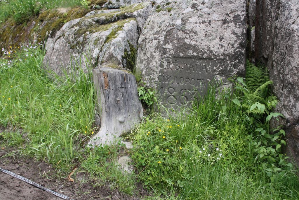 Дорога от Лещевого озера к ферме с памятным знаком на скале