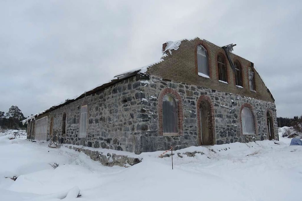 Объемно-пространственное решение:-принадлежность к архитектурному ансамблю, сформированному в начале 1880-х гг.; Композиционно-планировочное решение:-прямоугольное в плане одноэтажное каменное строение; -ж/б пандус, расположенный с восточной стороны строения.Конструктивная система:-ленточные бутовые фундаменты, их расположение, конструкции; -исторические валунные стены (каменный 1-ый ярус с ж/б пандусом), их габариты и расположение, материал - «сердобольский» гранит, тип кладки; -исторические кирпичные наружные стены, их габариты и расположение, конструкции, материал - серый кирпич; -полуциркульные и лучковые арки проемов, их расположение, материал – красный и серый кирпич; -расположение плоских перекрытий;-ж/б пандус с основанием, выложенным из каменной кладки, его расположение, конструкция, материалы.Объемно-планировочное решение: -сохранившаяся объемно-планировочная структура: плановые габариты и конфигурация; расположение проемов.Архитектурно-художественное решение фасадов: -материал и характер отделки фасадных поверхностей: каменная кладка из крупно,- и мелкоразмерных блоков из «сердобольского» гранита серого цвета с тесаной поверхностью неправильной формы; -кирпичная кладка (правая часть южного фасада), материал и цвет (серый); -арочные проемы, их расположение, габариты по ширине и высотные отметки арочных перемычек; оформление проемов красным кирпичом; -дверной проем на южном фасаде, габариты и расположение, лучковая перемычка; оформление проема – силикатный кирпич; -каменная облицовка объема 1-го этажа и кирпичная - правой части южного фасада; -арочные оконные и дверные проемы; исторический материал заполнений; исторический рисунок расстекловки арочных оконных проемов; крыша духскатной формы.