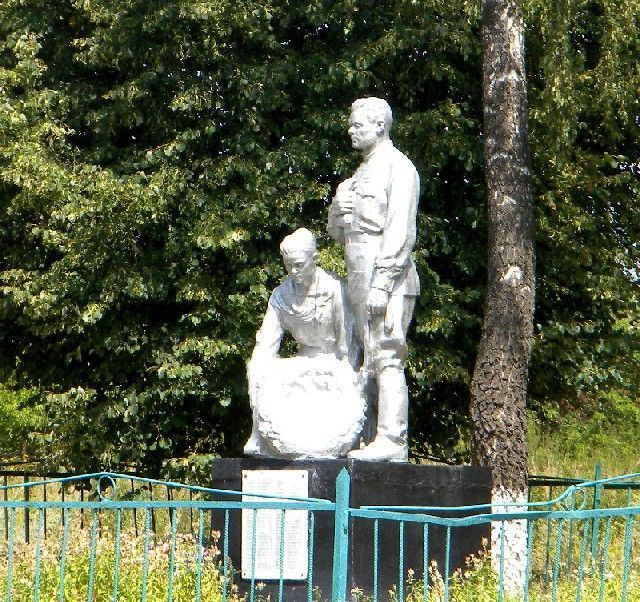 Братская могила воинов Советской Армии, погибших в феврале 1943 года. Захаронено и установлено фамилий на 10 человек. Скульптура установлена в 1952 году