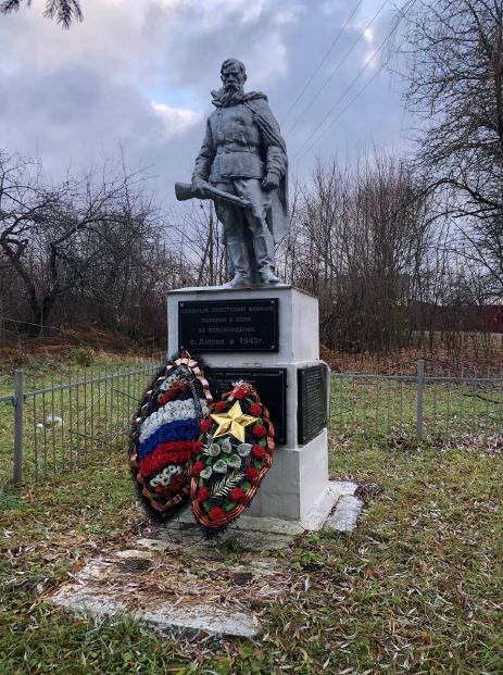 Братская могила воинов Советской Армии, погибших феврале 1943 года. Захоронено и установлены фамилии на 27 человек. Скульптура установлена в 1953 году