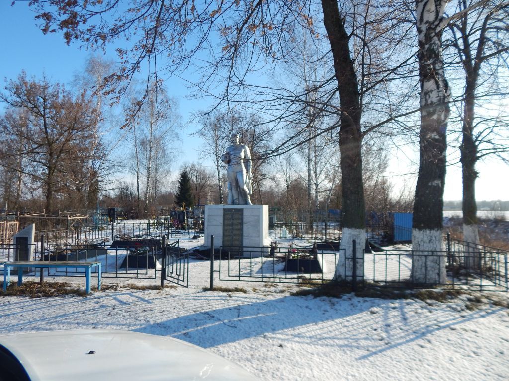 Братская могила воинов Советской Армии, погибших в феврале 1943 года. Захаронено и установлено фамилий на 18 человек. Скульптура установлена в 1952 году