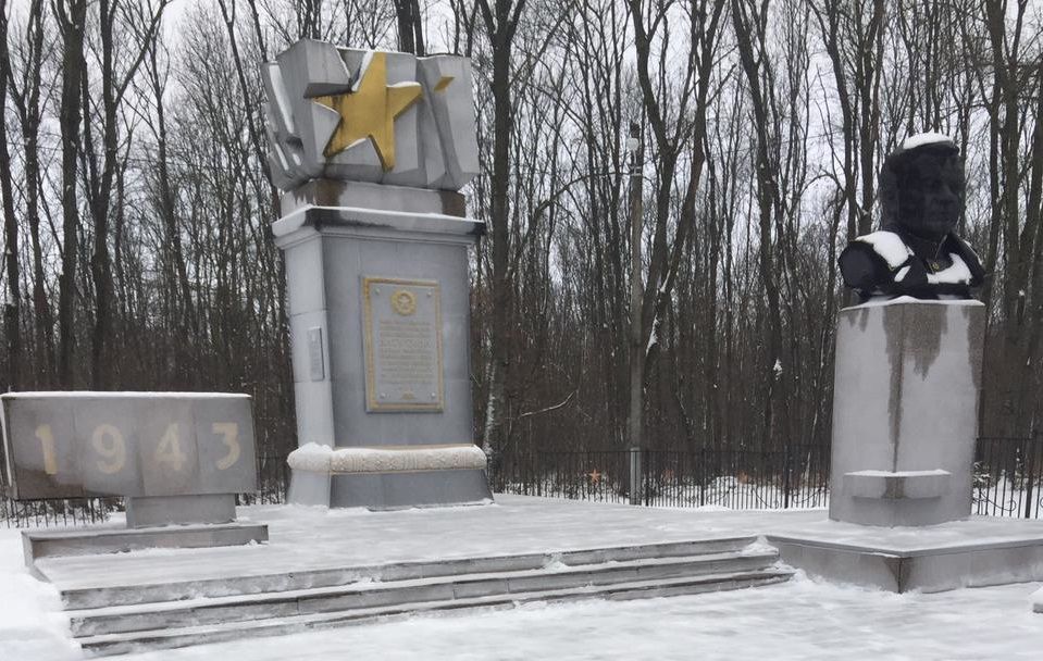 Мемориальное значение памятника:причастность к событиям Великой Отечественной Войны 1941-1945 гг.; историко-культурная ценность памятника; история объекта, связанная с подвигом Советских воинов в борьбе с немецко-фашистскими оккупантами на южном фасе Курской дуги и местом расположения штаба выдающегося полководца - генерала армии Ватутина Николая Федоровича, руководившего боями по разгрому немецко-фашистских войск на Прохоровском плацдарме в июле 1943 г.Местоположение памятника:существующее местоположение памятника на улице Ватутина д. 49 в пос. Кировский Пристенского района Курской области.Объемно-пространственная композиция и форма памятника:форма, композиция и оформление объектов памятника, в составе: - бюст генерала армии Н.Ф. Ватутина на постаменте; - стела с высеченной исторической датой «1943»; - мемориальный знак с памятной надписью; - гранитные стелы с обозначением воинских частей, участвовавших под командованием генерала Н.Ф. Ватутина в сражениях на Курской дуге.Архитектурно-декоративное оформление объектов памятника:бюст генерала армии Н.Ф. Ватутина без головного убора, в маршальском мундире, с двумя наградами на груди, установленный на постамент; стела с высеченной на граните исторической датой «1943»; мемориальный знак в виде двухступенчатого стилобата с уложенным по нижнему обрезу базы венком, выкрашенным в золотой цвет; прямоугольным параллелепипедом, возведенным на верхнем основаниибазы и венчающим его «картушем» в виде знамени со звездой, а также мемориальной доской на главном северном фасаде со барельефной звездой в лавровом венке и памятной надписью: «ЗДЕСЬ БЫЛА ЗЕМЛЯНКА,В КОТОРОЙ НАХОДИЛСЯШТАБ ГЕНЕРАЛА АРМИИВ А ТУ ТИ Н АНИКОЛАЯ ФЕДОРОВИЧА,РУКОВОДИВШЕГО БОЯМИПО РАЗГРОМУ НЕМЕЦКО-ФАШИСТСКИХ ВОЙСКНА ПРОХОРОВСКОМПЛАЦДАРМЕ В ИЮЛЕ1 9 4 3 г.». гранитные стелы с обозначением воинских частей, участвовавших под командованием генерала Н.Ф. Ватутина в сражениях на Курской дуге.Высотные силуэтные характеристики памятника:высотные характеристики, габариты объектов памятника (бюста генерала армии Н.Ф. Ватутина; стелы с датой «1943»; мемориального знака с памятной надписью; гранитных стел с обозначением воинских частей).Техника, материалы и цветовое оформление материалы объектов памятника:материал и характер отделки объектов памятника (бюста Н.Ф. Ватутина из медного сплава на бетонном постаменте, облицованном светло-серыми гранитными плитами; стелы с датой «1943», облицованной светло-серым гранитом; мемориального знака, облицованного темно серыми полированными гранитными плитами с венком (металлическим жгутом) из сплава алюминия, выкрашенного в золотой цвет; мемориальной доски из сплава дюралюминия с памятной надписью; стел с обозначением воинских частей, облицованных светло-серым гранитом).