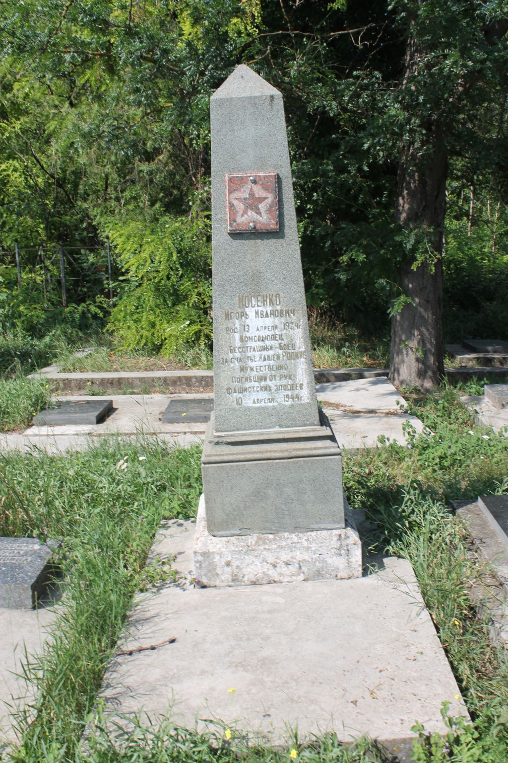 Предмет охраны объекта культурного наследия регионального значения «Могила подпольщика И.И. Носенко», 1944 год, расположенного по адресу: Республика Крым, г. Симферополь, пр-кт Кирова, гражданское кладбище.Историческая функция: Могила подпольщика И.И. Носенко, погибшего от рук нацистских оккупантов 10 апреля 1944 года.Захоронение подземное (могилы)Охраняется: захоронение в полном объеме (от поверхности земли) в существующих границах.Надмогильное сооружение Охраняется:- вид – надмогильный памятник, местоположение. - форма – обелиск на постаменте.Мемориальная надписьС лицевой стороны обелиска высечена мемориальная надпись: «Носенко Игорь Иванович Род. 13 апреля 1924 г. Комсомолец Бесстрашный боец за счастье нашей РОДИНЫ Мужественно погибший от рук фашистских злодеев 10 апреля 1944 года».Охраняется:- содержание мемориальной надписи (после ремонтно-реставрационных работ): «НОСЕНКО Игорь Иванович (13 апреля 1924 г. - 10 апреля 1944 г.) Комсомолец. Бесстрашный боец за счастье нашей Родины, мужественно погибший от рук нацистских злодеев».Предмет охраны может уточняться после проведения комплексных научных исследований.
