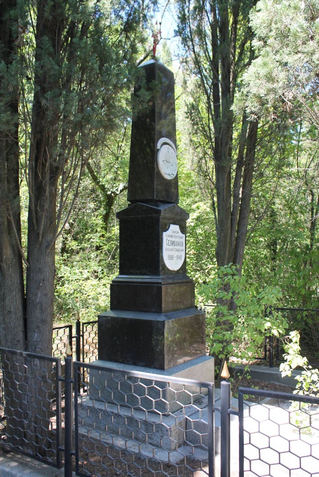 Предмет охраны объекта культурного наследия регионального значения «Могила гвардии генерал-лейтенанта А.Г.Селиванова», 1949 год, расположенного по адресу: Республика Крым, городской округ Ялта, пгт Ливадия, Севастопольское шоссе, поселковое кладбище.Историческая функция:Захоронение (одиночная могила) гвардии генерал-лейтенанта, командира 5-го Кавалерийского добровольческого казачьего корпуса, Селиванова Алексея Гордеевича.Захоронения подземные (могилы)Охраняется: захоронение в полном объеме (от поверхности земли) в существующих границах.Мемориальное сооружениеОбелиск на постаменте.Охраняется:местоположение; композиция памятника.Обелиск на постаментеОбелиск из габбро (габаритные размеры: 0,45х0,45х1,95(h) м), в форме классической четырехгранной пирамиды с сужением к верху. Постамент обелиска четырехступенчатый, две верхние ступени выполнены из габбро, две нижние - из гранита. Размеры ступеней постамента (снизу вверх): 1,05х1,05х0,15(h) м, 0,8х0,8х0,35(h) м, 0,7х0,7х0,4(h) м, 0,55х0,55х0,3(h) м. Перед постаментом расположена наклонная плита из гранита (габаритные разм6ры плиты: 0,65х1,40х0,15(h) м). Обелиск венчает пятиконечная звезда из металла.Охраняется:- обелиск – местоположение, конфигурация, габариты, форма; тип материала (габбро); - постамент – местоположение, конфигурация, габариты, форма; тип материала (габбро, гранит);- плита – местоположение, конфигурация, габариты, форма; тип материала (гранит).Мемориальные доскиНа лицевой грани постамента расположена мраморная мемориальная доска (габаритными размерами: 0,36х0,40 м) в виде стилизованного щита с выполненной на ней надписью: «Гвардии генерал-лейтенант Селиванов Алексей Гордеевич 1900-1949». На лицевой грани обелиска, над мемориальной доской, расположена округлая мраморная доска, диаметром 0,3 м, с изображением символа Вечного огня и лавровой ветви.На поверхности наклонной плиты установлена мраморная доска (габаритными размерами: 0,75х0,50 м) с изображением стилизованного герба с перекрещенными казачьими шашками.Охраняется:- мемориальные доски (сущ.) – местоположение (на лицевой грани обелиска, на наклонной плите), тип материала (мрамор); характер исполнения, тематика (сюжет) изображений; содержание мемориальной надписи.БлагоустройствоТерритория памятника (габаритные размеры: 3,45х3,80 м), обнесена металлическим ограждением, установленным на бетонный парапет.Охраняется:месторасположение, конфигурация, композиция территории в пределах ограждения.Предмет охраны может уточняться после проведения комплексных научных исследований.