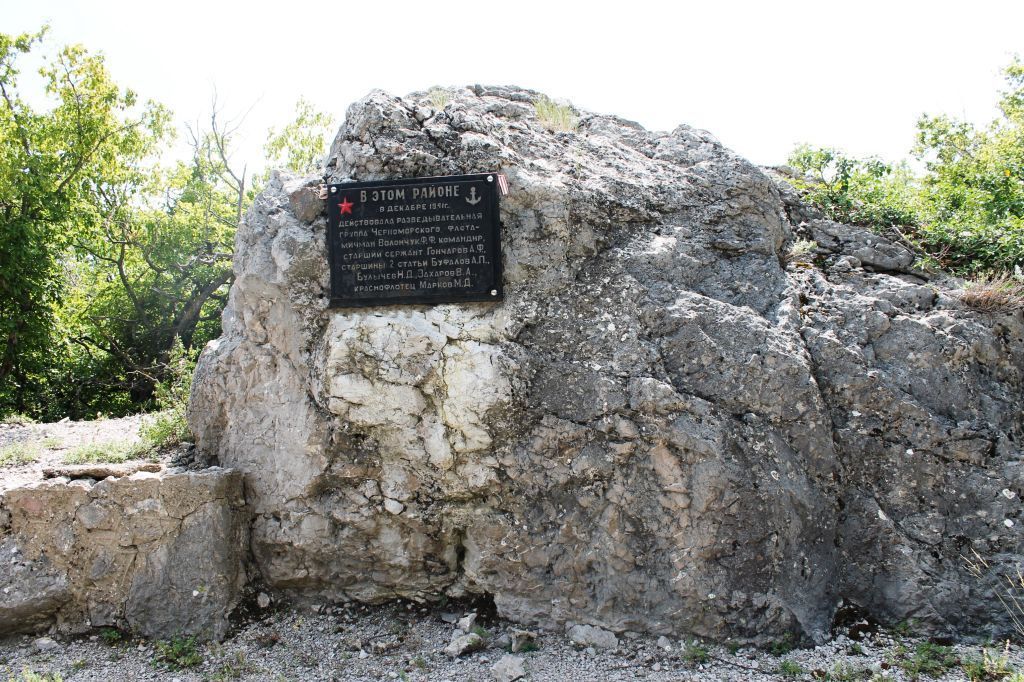 Предмет охраны объекта культурного наследия регионального значения «Памятный знак в честь разведчиков Черноморского флота», 1941 год, 1978 год, расположенного по адресу: Республика Крым, городской округ Ялта, старое шоссе Ялта - Севастополь между 51 и 52 км.Мемориальное сооружениеИнформационная доска и якорьОхраняется: местоположение, композиционное решение памятника.Информационная доска и якорьВ каменную глыбу вмонтирована окрашенная в черный цвет металлическая информационная доска с надписью: «В этом районе в декабре 1941 года действовала разведывательная группа Черноморского флота - мичман Волончук Ф.Ф. командир, старший сержант Гончаров А.Ф., старшина 2 статьи Буфалов А.П., Булычев Н.Д., Захаров В.А., краснофлотец Марков М.Д.».Ниже, на площадке с покрытием из шлифованного камня, установлен металлический якорь, окрашенный в черный цвет, высотой 2,3 м.Охраняется:- информационная доска: местоположение (с лицевой стороны каменной глыбы); содержание надписи (с возможностью уточнения информации о личных данных разведгруппы по данным архивов);- якорь: местоположение, конфигурация, габариты, форма, тип материала (металл), колористическое решение и тип отделки (краска черного цвета).БлагоустройствоЯкорь установлен на площадке с покрытием из шлифованого камня светло-розового оттенка, обнесенной бетонным парапетом. По периметру площадки расположено металлическое ограждение, окрашенное в черный цвет, в виде столбов, соединенных цепями.Охраняется:местоположение, габариты, конфигурация территории в пределах площадки.Предмет охраны может уточняться после проведения комплексных научных исследований.