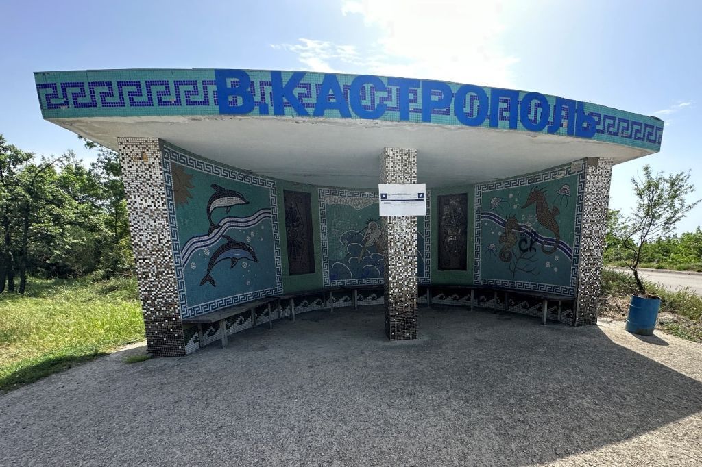 Нематериальные особенности объекта культурного наследияДатировка: 1960-е годы.Архитектурная и художественная ценность: оригинальное архитектурное решение остановочного павильона, мозаичная композиция, создают визуальный акцент и формируют эстетическую атмосферу Южнобережного шоссе, благодаря чему сооружение является неотъемлемой композиционной деталей архитектурного облика дороги.Материальные особенности объекта культурного наследияГрадостроительные характеристикиМестоположение: объект расположен на Южнобережном шоссе в пгт. Береговое.Охраняется местоположение.Архитектурные и конструктивные характеристикиСооружение остановочного павильона: остановочный павильон представляет собой железобетонное дугообразное сооружение с навесом. Навес опирается на дугу и прямоугольную в сечении колонну, установленную напротив центра дуги. С внутренней стороны расположены две прямоугольные ниши.Охраняются: местоположение, объемно-пространственная композиция, конфигурация, размеры, тип материала сооружения.Мозаичные композиции: Конструкции остановочного павильона, включая торцы навеса декорированы мозаикой. Наружная (задняя) сторона дугообразной стены остановочного павильона декорирована одним большим панно, помещенным в рамку из меандра (голубой и белом фоне). Сюжет панно: группа из трех дельфинов, выпрыгнувших над высокими волнами. Цветовая гамма панно: оттенки голубого, синий, белый, черный. Цокольная часть выделена высоким орнаментом в виде волны (нижняя часть белая, верхняя темно-зеленая). Между панно и цоколем – полоса из мозаики оливкового цвета.Внутренняя сторона дугообразной стены остановочного павильона декорирована тремя панно, помещенными в рамки из меандра (голубой на белом фоне). Сюжеты панно (слева направо): 1) пара дельфинов, разделенных волнообразной линией, половина солнца в левом верхнем углу; 2) седовласый Нептун в короне и с длинной белой бородой, с занесенным над головой трезубцем в левой руке и опущенной правой рукой, с оголенным торсом, вынырнувший из бурных волн до пояса; 3) пара морских коньков разного размера, пара медуз, морские водоросли, волнистая линия. Цветовая гамма панно: белый, оттенки голубого, синего, светло-коричневого цветов. Между панно устроены прямоугольные ниши, украшенные орнаментом в коричневых тонах (пальметты, окружности, спирали). Цокольная часть внутренней части дугообразной стены оформлена так же, как и наружная.Торцевые части дугообразной стены и грани колонны оформлены мозаикой с градиентным переходом от темного низа к светлому верху. Цветовая гамма: оттенки коричневого и белый.Перекрытие остановочного павильона по периметру (в торцах) украшено меандром темно-синего цвета на голубом фоне.Охраняются: местоположение, тип материала, рисунок, художественный образ мозаичных композиций, колористическое решение.Предмет охраны может конкретизироваться при изменении степени исследованности памятника.
