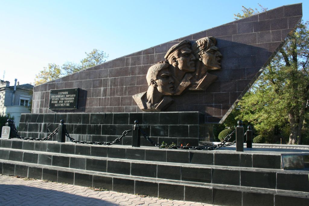 Предмет охраны объекта культурного наследия регионального значения «Памятный знак на месте высадки Евпаторийского десанта в 1942 году (скульптор А.Е. Шмаков)», 1986 год, расположенного по адресу: Республика Крым, г. Евпатория, ул. Революции/ул. Демышева.Авторство: скульпторы А.Е. Шмаков, Л.П. Захаров.Историко-художественная ценность: Художественное решение памятного знака (авторы - скульпторы А.Е. Шмаков, Л.П. Захаров).Мемориальное сооружениеГоризонтальная стела на постаменте.Охраняется: местоположение, объемно-композиционное решение памятника.СтелаГоризонтальная стела трапециевидной формы (габаритные размеры 0,4х8,6х3,0(h) м), стилизованная под морской катер, выполнена из бетона и установлена на бетонный постамент (габаритные размеры 1,3х6,15х0,82(h) м). Стела облицована плиткой из красного гранита, постамент - плиткой из натурального камня черного цвета. Стела размещена на трёхступенчатом бетонном подиуме (габаритные размеры: первая ступень (4,3х11,6х0,3(h) м); вторая ступень (3,7х11,03х0,3(h) м); третья ступень (3,1х9,4х0,3(h) м). Поверхности подиума облицованы плиткой из натурального камня черного цвета. На лицевой грани стелы, с правой стороны установлен бронзовый барельеф с погрудным изображением трёх моряков-десантников. В центре барельефа изображен десантник в морской бескозырке, справа десантник с забинтованной головой. Слева расположена мемориальная доска (габаритные размеры 1,3х0,7(h) м) из натурального камня лабрадорита с надписью: «Героям Евпаторийского морского десанта, совершившим подвиг, имя которому БЕССМЕРТИЕ».На противоположной стороне стелы, справа установлена мемориальная доска (габаритные размеры 1,2х0,52 h) м) из натурального камня лабрадорита с надписью: «Здесь во время Великой Отечественной войны в ночь с 4 на 5 января 1942 г. отрядом кораблей Черноморского флота (тральщик «Взрыватель», буксир СП-14, 7 сторожевых катеров «Морской охотник») под командованием капитана II ранга Н.В. Буслаева был высажен десант в составе усиленного батальона морской пехоты численностью 740 человек, возглавляемый капитан-лейтенантом К.Г. Бузиновым и батальонным комиссаром Г.М. Палеем».Охраняется:- стела, постамент, подиум: местоположение, конфигурация, габариты, тип отделки и цветовое решение, тип материала - после проведения комплексных научных исследований; - рельефные изображения: местоположение, конфигурация, размер, техника исполнения, тематика (сюжет), тип материала, цветовое решение - после проведения комплексных научных исследований;- мемориальные надписи – местоположение, содержание.БлагоустройствоНа третьей ступени подиума установлено стилизованное ограждение из морских цепей, которые прикреплены к бетонным столбикам (размеры 0,15х0,15х0,5(h) м), облицованных плиткой из натурального камня черного цвета. Поверх столбиков установлены шары из натурального камня черного цвета.Охраняется:местоположение, конфигурация, композиция благоустроенной территории; местоположение, стиль, характер ограждения.Предмет охраны может уточняться после проведения комплексных научных исследований.
