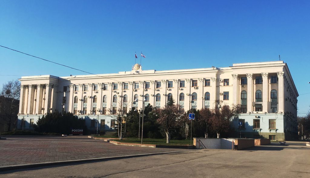 Предмет охраны объекта культурного наследия регионального значения «Здание Дома Советов, 1956-1960 годы», по адресу: Республика Крым, г. Симферополь, пр. Кирова, 13, литер «А».Датировка – 1956-1960 годы.Авторство – архитектор В.А.Ярошевский, конструктор Е.М.Скрисанова.Историко-художественная ценность – в декоре фасадов присутствуют приемы, характерные классической архитек¬туре, отличается монументальностью, лаконизмом и сдержанностью форм.Историческая функция – является образцом советской архитектуры при строительстве административных зданий в период 50-60-х годов XX века.Градостроительная ценность – объект представляет градостроительную ценность, как часть исторически сложившегося центра г. Симферополя в середине 20 столетия. Здание Дома советов формирует главную площадь города им. В.И.Ленина.Градостроительные характеристики:- Местоположение здания – главный фасад обращен в сторону площади Ленина, юго-восточный фасад расположен вдоль основной транспортной артерии – проспекта Кирова, расположен по границе «красной» линии, второй боковой - северо-западный фасад выходит на ул. Севастопольскую, задний фасад - на ул. Гоголя. - Силуэт, габариты – силуэт прямоугольный, габаритные размеры здания согласно планам БТИ: 88,0x70,0 х19,0 (h) м. Охраняются силуэт и габариты. Архитектурные и конструктивные характеристики:- Объемно-пространственная композиция – в объемно-планировочном решении здание состоит из четырех прямоугольных блоков, образующих замкнутый контур с прямоугольным внутренним двором. Во внутренний двор организованы два въезда со стороны ул. Гоголя. Блок, ориентированный на ул. Гоголя, трехэтажный с цокольным этажом, остальные блоки четырехэтажные с цокольным этажом. Под частью здания устроен подвал. Блок, ориентированный на ул. Гоголя, трехэтажный с цокольным этажом, остальные блоки четырехэтажные с цокольным этажом. Под частью здания устроен подвал. Входы в здание осуществляются: один со стороны площади им. В.И. Ленина (центральный) и три со стороны ул. Гоголя. Охраняется объемно-пространственная композиция в редакции 1960 года, охраняется форма в плане, этажность.- Крыша плоская над четырехэтажными блоками, над трехэтажным блоком двухскатная. Охраняется - конфигурация, высотные отметки коньков.Композиция и архитектурно-художественное оформление фасадов:Охраняется композиционная структура и архитектурное решение фасадов здания:форма и обрамление оконных проемов (первого, второго и четвертого этажей прямоугольные, третьего этажа - арочные с циркульным завершением) - охраняется местоположение, форма, размер, конфигурация, количество;- форма и обрамление дверных проемов - охраняется местоположение, форма, размер, конфигурация, количество;- подоконные карнизы проемов первого этажа с кронштейнами (по два кронштейна на каждый карниз) - охраняется местоположение, форма, размер, конфигурация, материал;- декоративные круглые розетки между окнами второго и третьего этажей (по одной розетке на каждую пару окон) - охраняется местоположение, форма, размер, конфигурация, количество, материал;- подоконный карниз между пилястрами в уровне 4-го этажа - охраняется местоположение, форма, размер, конфигурация, материал;- стилизованная колоннада (пилястры с коринфскими капителями в простенках между окнами второго – четвертого этажей) - охраня