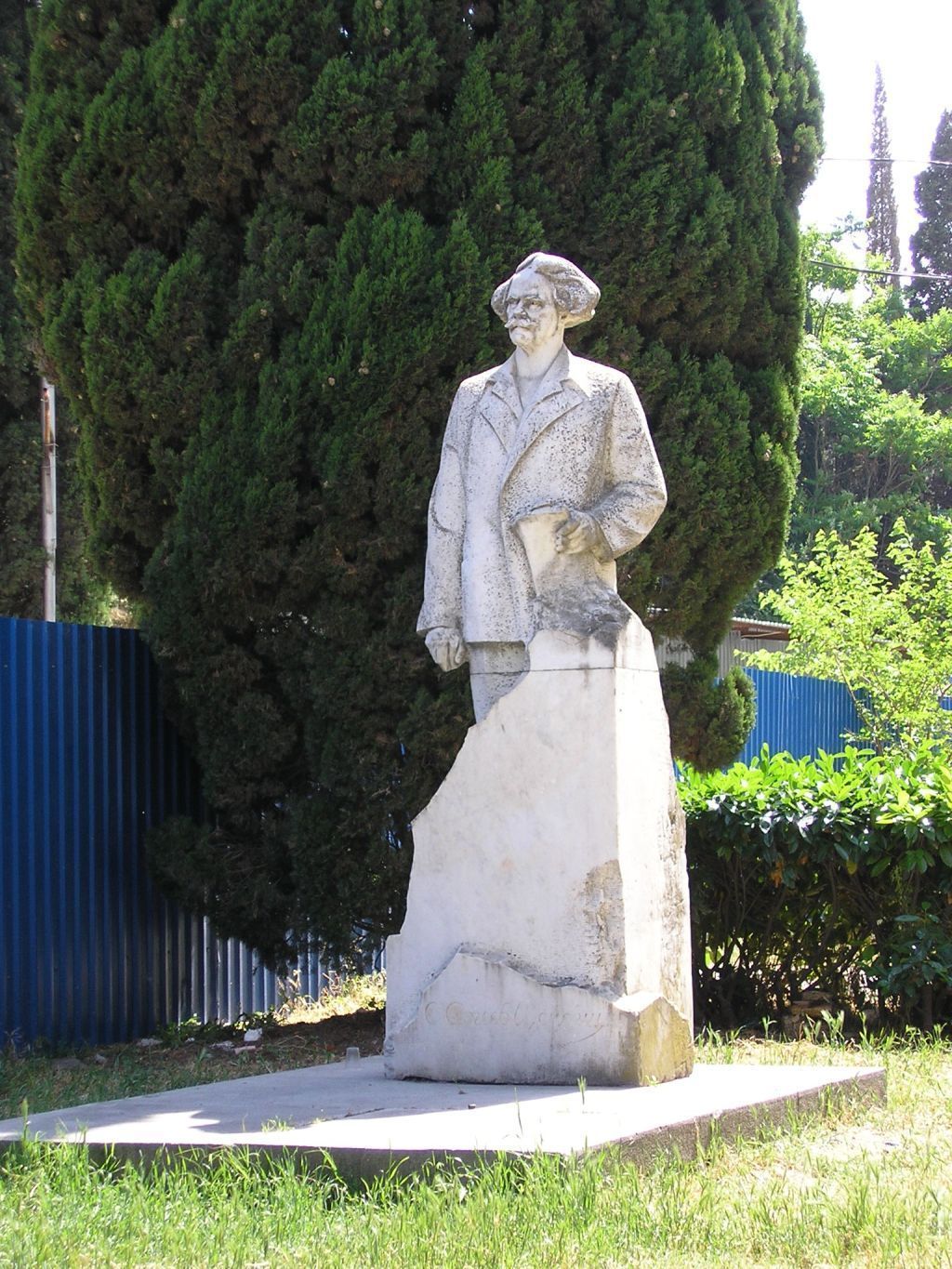 Нематериальные особенности объекта культурного наследияДатировка: дата создания памятника ¬– 1966 год.Авторство: автор памятника – народный художник СССР, действительный член АХ СССР, профессор Николай Васильевич Томский, Герой Социалистического труда, Лауреат государственной премии СССР.Историческая (мемориальная) ценность: памятник крупнейшему советскому писателюСергею Николаевичу Сергееву-Ценскому (1875-1958г), академику с 1943 г., автору произведений «Севастопольская страда», «Преображение России» и др.Историко-художественная ценность: скульптурный памятник С.Н. Сергееву-Ценскому является характерным примером советской традиции монументального искусства.Историческая функция: монументальная скульптура.Градостроительная ценность: памятник формирует облик городского сквера.Материальные особенности объекта культурного наследияГрадостроительные характеристикиМестоположение: памятник расположен в историческом центре г. Алушта, в сквере на углу улиц Краснофлотская и Октябрьская.Охраняется: местоположение.Композиционная значимость: памятник является композиционным акцентом в общей структуре сквера.Охраняется: роль в композиции городского сквера.Габариты и силуэт: габариты основания: 0,83х1,03. Высота памятника: 3,10 м.Охраняются: габариты и силуэт.Секторы и направления видовых раскрытий, визуальные связи памятника: к площадке с памятником ведет центральная аллея сквера.Охраняется: вид на памятник с центральной аллеи сквера.Архитектурные и конструктивные характеристикиОбъемно-пространственная композиция: скульптурный памятник изображает писателя выступающим с речью с трибуны перед невидимой аудиторией. Голова с пышными прядями волос чуть приподнята и повернута вправо, взгляд устремлен вперед. В левой руке писатель держит книги, правая рука опущена вдоль туловища. Особенностью композиции является отсутствие постамента, его функции исполняет глыба белого мрамора в форме параллелепипеда, из которой «вырастает» фигура писателя.Памятник установлен на прямоугольной площадке из гранитных плит.Охраняется: местоположение, конфигурация, объемные параметры скульптуры и стилобата.Техника и материалы исполнения памятника: скульптура высечена из белого мрамора с использованием различных техник шлифования и полировки и сколов поверхности. Стилобат сложен из гранитных плит с бучардированной поверхностью.Охраняется: материал, техника исполнения, фактура поверхности скульптуры и стилобата.Колористическое решение:Охраняется: естественный цвет белого мрамора и гранитных плитМемориальные надписи:на северо-восточной части постамента высечена надпись: «С. Сергеев-Ценский», с юго-восточной стороны высечена надпись: «ск. Томский Н. В. 1966».Охраняется: местоположение, текст, размеры, шрифт.Предмет охраны может уточняться после проведения комплексных научных исследований.