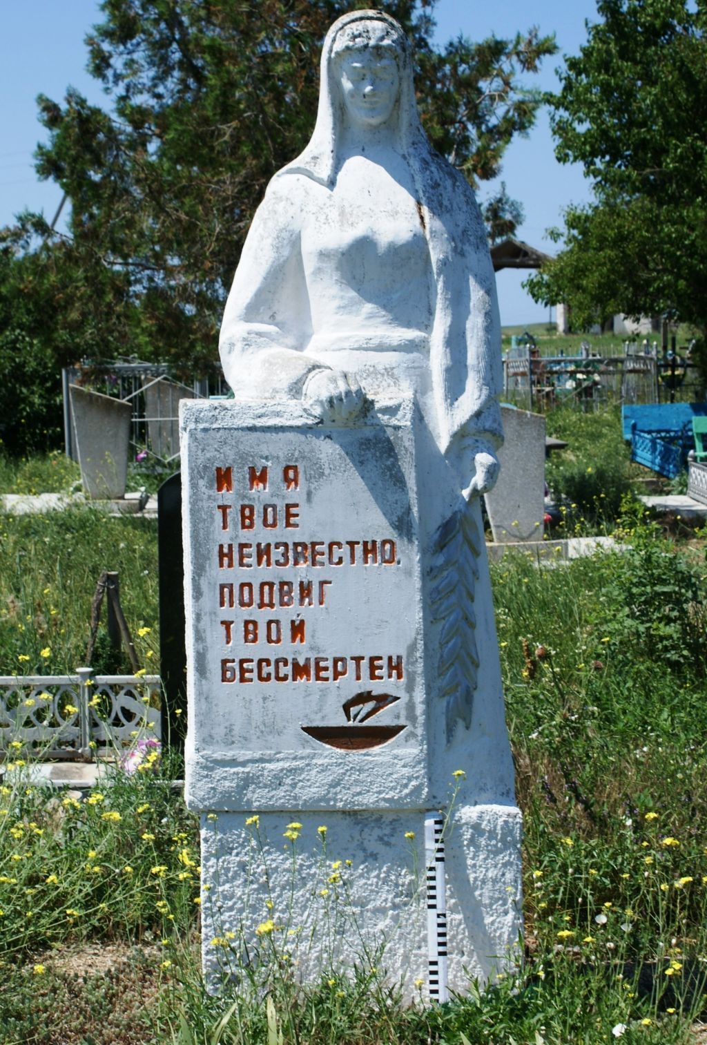 Предмет охраны объекта культурного наследия регионального значения «Могила неизвестного солдата», 1941 год, расположенного по адресу: Республика Крым, Сакский район, сельское поселение Геройское, сельское кладбище.Авторство: И.С. Кравченко.Историко-художественная ценность: Авторское решение памятника (автор И.С. Кравченко).Историческая функция:Захоронение неизвестного солдата Красной армии (одиночная могила), погибшего 30 октября 1941 г. в бою с нацистами возле села Ашага-Ждамин (с. Геройское).Захоронения подземные (могилы)Охраняется: захоронение в полном объеме (от поверхности земли) в существующих границах.Надмогильное сооружениеСкульптура на постаменте.Охраняется:местоположение, композиционное решение памятника.Скульптура на постаментеПолнофигурная скульптура, высотой 1,75 м, изображает скорбящую женщину, держащую стилизованную лавровую ветвь в правой руке, в левой - мемориальную табличку (габаритные размеры: 0,5 х 0,9 м) с надписью: «ИМЯ ТВОЕ НЕИЗВЕСТНО ПОДВИГ ТВОЙ БЕССМЕРТЕН». Скульптура установлена на квадратном в плане постаменте (габаритные размеры: 0,7 х 0,5 х 0,5(h) м). Элементы памятника из бетона, отделка выполнена краской белого (скульптура), зеленого (лавровая ветвь) и серого (постамент и табличка) цветов.Охраняется:- скульптура: местоположение, конфигурация, габариты, форма, сюжет (тематика), характер исполнения, тип материала; колористическое решение и тип отделки - после проведения комплексных научных исследований;- постамент, мемориальная табличка: местоположение, конфигурация, габариты, форма, тип материала; колористическое решение и тип отделки – после проведения комплексных научных исследований;- мемориальная надпись (сущ.): местоположение, содержание;- мемориальная надпись (после проведения ремонтно-реставрационных работ): «Здесь захоронен Неизвестный воин, отдавший жизнь за свободу и независимость нашей Родины в бою с захватчиками 30 октября 1941 г. Вечная память герою!».БлагоустройствоВокруг памятника устроена площадка с покрытием из бетонных тротуарных плит (габаритные размеры: 2,1 х 4,3м), в центре которой устроен прямоугольный в плане цветник (1,6 х 0,8 м).Охраняется:местоположение, конфигурация, габариты благоустроенной территории в пределах площадки.Предмет охраны может уточняться после проведения комплексных научных исследований.