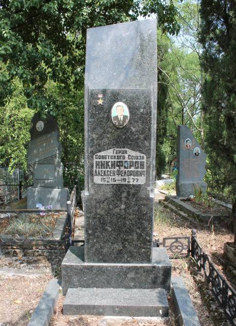 Предмет охраны объекта культурного наследия регионального значения «Могила Героя Советского Союза А.Ф. Никифорова», 1977 год, расположенного по адресу: Республика Крым, г. Ялта, ул. Блюхера, 21а, городское кладбище, сектор №1.Историческая функция:Захоронение Героя Советского Союза Никифорова Алексея Федоровича – участника Великой Отечественной войны.Захоронения подземные (могилы)Охраняется: захоронение в полном объеме (от поверхности земли) в существующих границах.Надмогильное сооружениеОхраняется:- вид – надмогильный памятник; местоположение.Мемориальная надписьС лицевой стороны стелы выполнена мемориальная надпись: «Герой Советского Союза Никифоров Алексей Федорович (17.3.1915-21.3.1977)». Над надписью расположен портрет Никифорова А.Ф. В левом верхнем углу выполнено изображение медали «Золотая звезда».Охраняется:- мемориальная надпись: местоположение (с лицевой стороны памятника), содержание;- портретное изображение: местоположение (с лицевой стороны памятника), тематика (сюжет);- изображение медали «Золотая звезда»: местоположение (с лицевой стороны памятника), тематика (сюжет).БлагоустройствоПеред памятником устроен прямоугольный цветник, огражденный гранитным бордюром (габаритные размеры: 1,1 х 1,8 х 0,3 (h). Территория вокруг памятника обнесена бетонным парапетом, на котором установлено металлическое ограждение черного цвета.Охраняется:местоположение, конфигурация, габариты территории в пределах ограждения.Предмет охраны может уточняться после проведения комплексных научных исследований.
