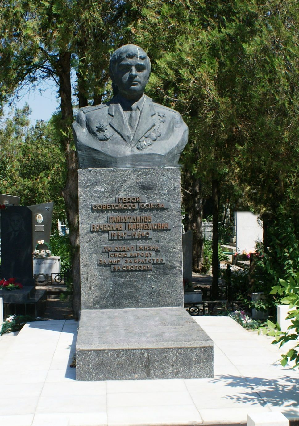 Предмет охраны объекта культурного наследия регионального значения «Могила героя Советского Союза В.К.Гайнутдинова», 1980 год, расположенного по адресу: Республика Крым, г.Саки, ул.Виноградная, гражданское кладбище.Историческая функция:Захоронение Героя Советского Союза Гайнутдинова В.К. - участника Афганской войны.Художественная ценностьАвторское решение памятника (автор неизвестен).Захоронения подземные (могилы)Охраняется: захоронение в полном объеме (от поверхности земли) в существующих границах.Надмогильное сооружениеБюст на постаменте.Охраняется:- местоположение, композиция памятника.Бюст на постаментеБюст с изображением Гайнутдинова В.К. без головного убора, в военной форме (габаритные размеры: 0,8 х 0,6 х 1,2(h) м), выполнен способом медной выколотки, установлен на бетонный постамент (габаритные размеры: 0,90 х 0,65 х 1,5(h) м), облицованный плиткой из черного гранита.На лицевой грани постамента выполнена накладными буквами мемориальная надпись: «ГЕРОЙ СОВЕТСКОГО СОЮЗА ГАЙНУТДИНОВ ВЯЧЕСЛАВ КАРИБУЛОВИЧ 6.02.1947-17.08.1980. ты отдал жизнь свою народу за мир, за братство, за свободу».Перед постаментом установлена бетонная плита (габаритные размеры: 0,90 х 1,70 х 0,25(h) м), облицованная плиткой из черного гранита. Постамент с бюстом установлен на двухступенчатое основание из бетона (габаритные размеры первой ступени – 3,70 х 5,70 х 0,15(h) м, второй – 3,70 х 2,10 х 0,15(h) м), облицованное плиткой из мрамора и гранита светлого цвета.Охраняется:- бюст - конфигурация, габариты, форма, сюжет (тематика), техника исполнения, тип материала (медь); - постамент, основание - местоположение, конфигурация, габариты; тип материала и облицовки - после проведения комплексных научных исследований; - мемориальная надпись – местоположение (с лицевой стороны постамента), содержание, техника исполнения.БлагоустройствоТерритория вокруг памятника благоустроена. На первой ступени основания установлено ограждение в виде 14-ти прямоугольных мраморных столбиков (размер каждого - 0,15 х 0,15 х 0,30(h) м), объединенных цепями. За постаментом разбиты две клумбы квадратной формы (размеры каждой: 0,6 х 0,6 м).Охраняется:местоположение, конфигурация, габариты благоустроенной территории в пределах ограждения.Предмет охраны может уточняться после проведения комплексных научных исследований.