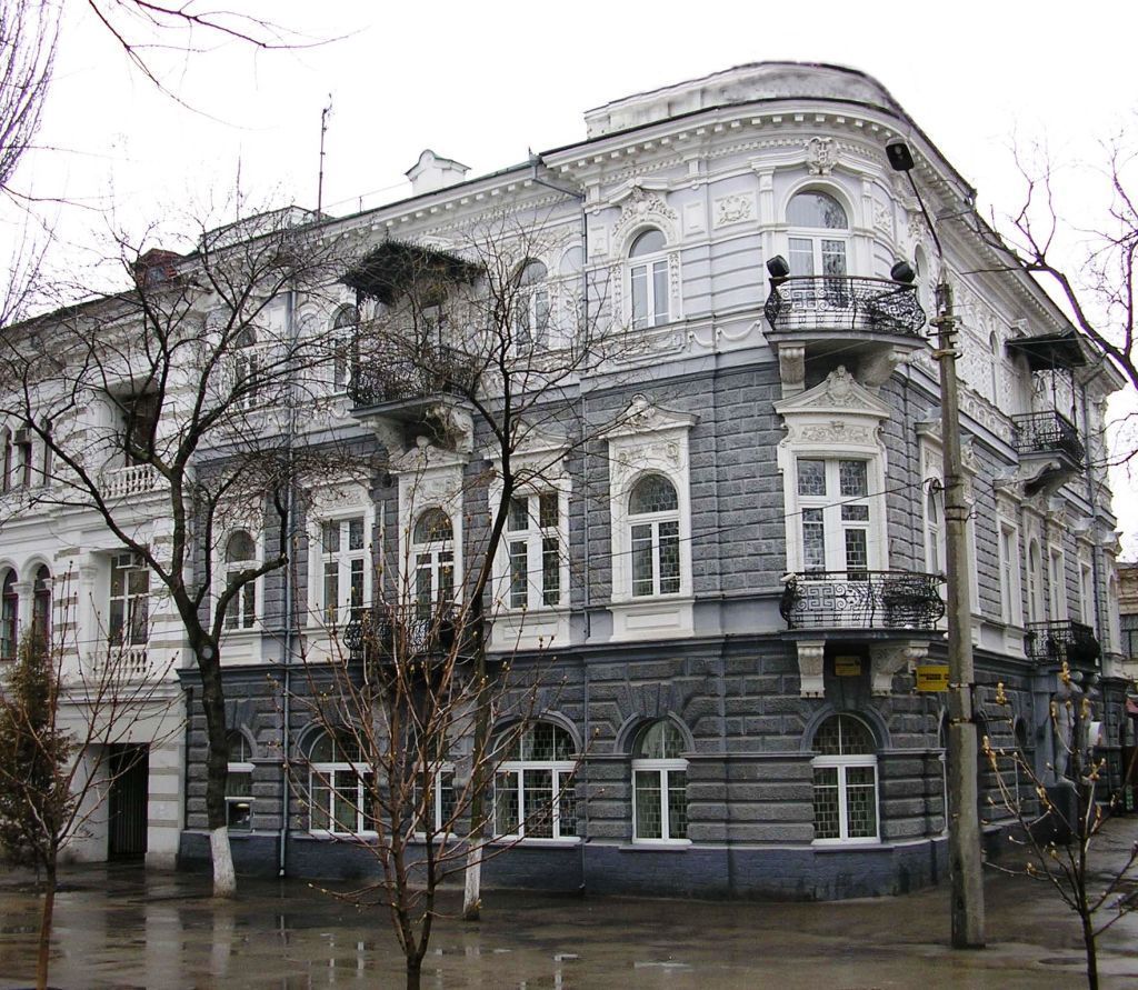 Материальные особенности объекта культурного наследияГрадостроительные характеристикиМестоположение здания: здание Г-образное в плане, трехэтажное, занимает угловое положение с примыканием с левой стороны соседнего домостроения, размещается по красным линиям улиц Горького и Назукина, главные фасады обращены в сторону улиц. Охраняется местоположение здания.Силуэт, габариты: строение каменное трехэтажное с подвальными помещениями, располагающимися под малой частью здания; крыша двухскатная, чердачная. Габаритные размеры ОКН: общий в плане – 17,06х26,06м; высота здания от отмостки до верха карниза – 14,60 м. Высота подвальных помещений – 1,52 м; первого этажа – 3,71 м; второго этажа – 4,90 м; третьего этажа – 4,20 м. Охраняется силуэт и габариты.Исторические объемно-пространственные и конструктивные характеристикиОбъемно-пространственная композиция и планировочные решения: здание Г-образное в плане, трехэтажное, занимает угловое положение с примыканием с левой стороны соседнего домостроения. Охраняется конфигурация здания в плане без пристроенных поздних хозпостроек, этажность. Существующая планировочная схема здания смешанная – частично коридорная и анфиладная, с организованными двумя выходами – главный выход (вход) на ул. Назукина и на дворовую территорию, ныне застроенную хозяйственными постройками. Охраняется пространственно-планировочная структура здания в пределах капитальных стен.Конструктивные элементы: ленточные фундаменты из бута и тесаного камня мраморовидного известняка. Охраняется местоположение, тип материала.Цоколи сложены из тесаного камня с последующим оштукатуриванием и окраской. Охраняется местоположение, тип материала.Наружные капитальные стены выполнены из камня-ракушечника и частично в уровне 1-го этажа из кирпича, на известково-песчаном растворе, оштукатурены с последующей окраской. Охраняется местоположение, тип материала; Внутренняя существующая парадная лестница П-образной конфигурации в плане, бетонная с поворотными площадками и прямыми маршами по металлическим косоурам. Ступени и площадки облицованы плитами белого мрамора (за исключением 1-го марша на 1-ом этаже), перила лестницы – ажурные металлические. Для дневного освещения лестничного объема устроен фонарь – лантерна (итал.), квадратный в плане, возвышающийся над кровлей. От светового фонаря свет падает на остекление, устроенное в чердачном перекрытии в центре над лестничным объемом. Охраняются – местоположение, конфигурация габариты, форма, тип материала, рисунок ограждения;Перекрытия – плоские: над подвальными помещениями бетонное по металлическим балкам; межэтажные по деревянным балкам; чердачное по деревянным и металлическим балкам. Охраняется местоположение.Крыша: чердачная, двухскатная, из деревянных конструкций, в чердачном пространстве с возвыше-нием над кровлей устроен фонарь, квадратный в плане; покрытие кровли позднее, выполнено при ремонтных работах в 1994 -96 гг. из кровельного листового окрашенного металла с фальцеванием. Охраняется конфигурация, форма, высотные отметки коньков и карнизов, тип материала, первоначальная технология покрытия кровли (двойной стоячий фальц); местоположение, габариты и высотные отметки светового фонаря, тип материала водосточной системы (оцинкованная сталь).Аттики: участки стен, р