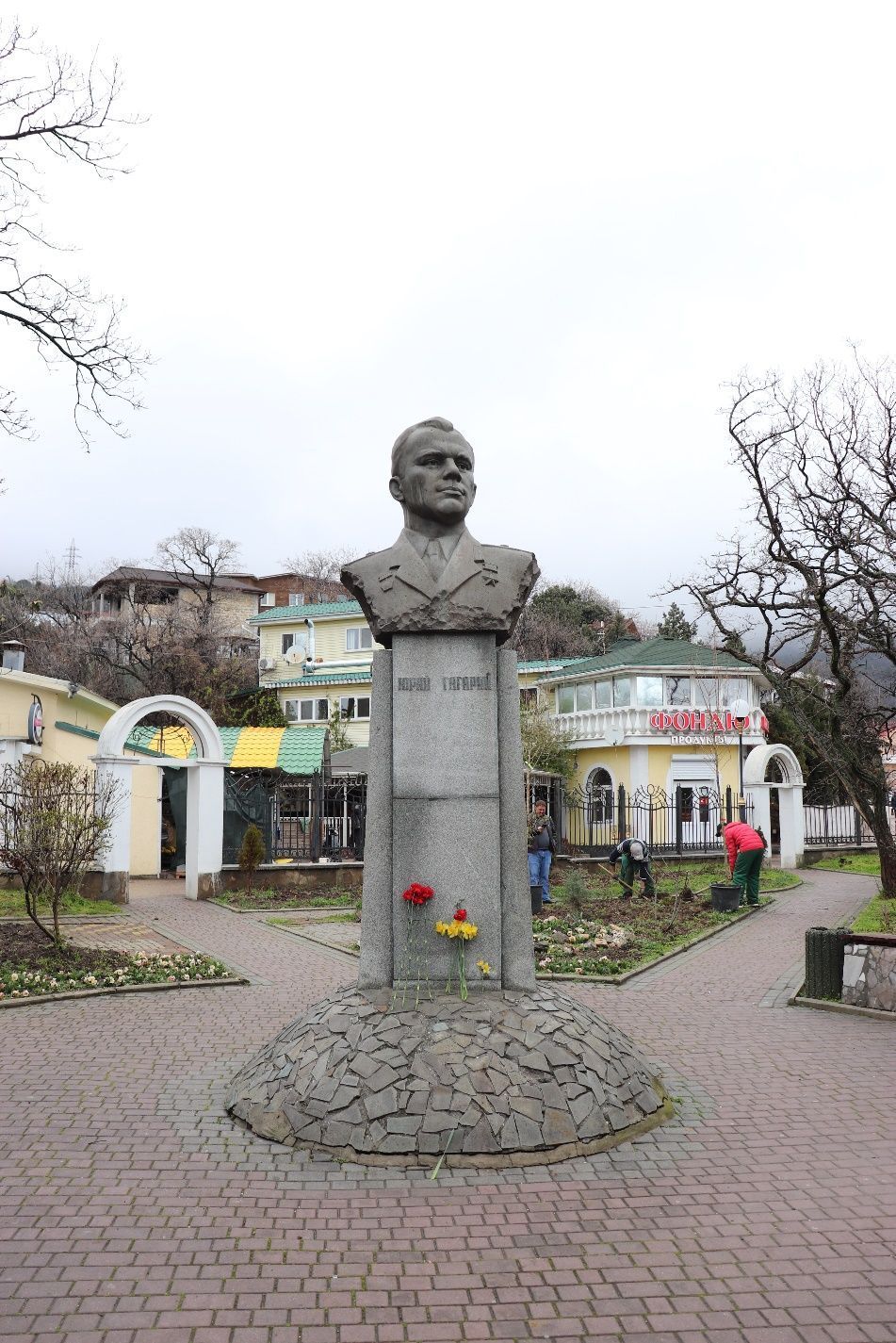 Нематериальные особенности объекта культурного наследияДатировка: 1991 год.Историческая (мемориальная) ценность: памятник Ю.А. Гагарину установлен в память нахождения космонавта в Форосе в 1961 году на отдыхе.Материальные особенности объекта культурного наследияГрадостроительные характеристикиМестоположение: на территории сквера. Охраняется местоположение.Архитектурные и конструктивные характеристикиОснование: полусферическое бетонное основание, облицованным камнем неправильной формы. Охраняется: местоположение, форма, материал.Постамент: Прямоугольный высокий постамент из натурального камня. На лицевой грани находится текст: «ЮРИЙ ГАГАРИН». Охраняется: местоположение, габариты, материал постамента, текст.Бюст Ю.А. Гагарина: Подгрудное изображение (бюст) Ю.А. Гагарина, выполнено в камне. Космонавт изображен в военной форме (пиджак с отложным воротником, рубашка и галстук); на груди – звезда Героя Советского Союза, нагрудный знак «Лётчик-космонавт СССР». Лицо повернуто вполоборота влево, взгляд устремлен вдаль. На боковой грани бюста, снизу, выгравирован текст: «Савицкий Н.Л., В. Дашкевич». Охраняется: местоположение, габариты, техника и материал скульптуры, надписи.Предмет охраны может конкретизироваться при изменении степени исследованности памятника.