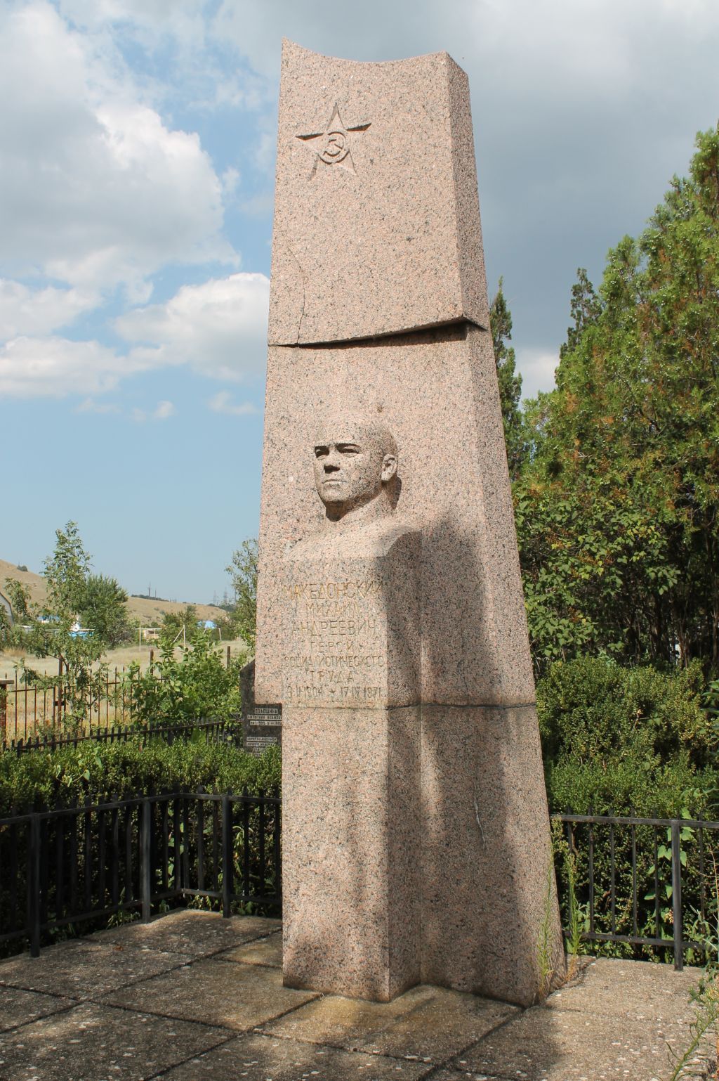 Предмет охраны объекта культурного наследия регионального значения «Могила Героя Социалистического труда М.А.Македонского», 1971 год, расположенного по адресу: Республика Крым, городской округ Феодосия, пгт.Щебетовка, поселковое кладбище.Историко-художественная ценностьАвторское решение памятника (автор неизвестен).Историческая функция:Захоронение (одиночная могила) Героя Социалистического труда М. А. Македонского, умершего 26 апреля 1971 года.Захоронения подземные (могилы)Охраняется: захоронение в полном объеме (от поверхности земли) в существующих границах.Надмогильное сооружениеСтела и бюст на постаменте, надмогильная плита.Охраняется:местоположение, композиция памятника.Стела и бюст на постаментеВертикальная стела имеет сложную форму с сужением к верху (высота – 4,3 м). В ее верхней части выполнено рельефное изображение Ордена Отечественной войны.К лицевой стороне стелы примыкает прямоугольный постамент (габаритные размеры: 0,500 х 1,800 х 0,204 м) с бюстом М.А. Македонского. Элементы памятника выполнены из красного гранита.На лицевой части постамента высечена мемориальная надпись:«Македонский Михаил Андреевич Герой Социалистического труда 3.II.1904-17.IV.1971» (в надписи допущена ошибка).Охраняется:- стела, постамент: местоположение, конфигурация, габариты, форма, тип материала (красный гранит);- бюст Македонского М.А.: местоположение, конфигурация, габариты, форма, тематика (сюжет), тип материала (красный гранит);- символ Ордена Отечественной войны: местоположение, конфигурация, габариты, форма, тематика (сюжет);- мемориальная надпись: местоположение (с лицевой стороны постамента); содержание (после проведения ремонтно-реставрационных работ):«Македонский Михаил Андреевич Герой Социалистического труда 3.II.1904-26.IV.1971» - с возможностью уточнения информации по данным архивов.Надмогильная плитаНа юго-западе от стелы и бюста на постаменте установлена прямоугольная в плане надмогильная плита (габаритные размеры: 1,96 х 0,30 х 0,95 м) из красного гранита.На наклонной лицевой грани плиты высечена мемориальная надпись: «Командиру Южного объединения партизанских бригад Крыма. Основателю колхоза «Коктебель»», левее – высеченное изображение винтовки и дубовой ветви (изображение частично утрачено).Охраняется:- надмогильная плита: местоположение, конфигурация, габариты, форма, тип материала (красный гранит);- мемориальная надпись: местоположение (с лицевой стороны плиты), содержание, габариты;- изображение (после восстановления): местоположение (с лицевой стороны плиты), конфигурация, габариты, форма, тематика (сюжет).БлагоустройствоПамятник расположен на площадке прямоугольной формы в плане, вымощенной бетонными тротуарными плитами и обнесенной металлическим ограждением черного цвета.Охраняется:местоположение, конфигурация, габариты территории в пределах ограждения.Предмет охраны может уточняться после проведения комплексных научных исследований.