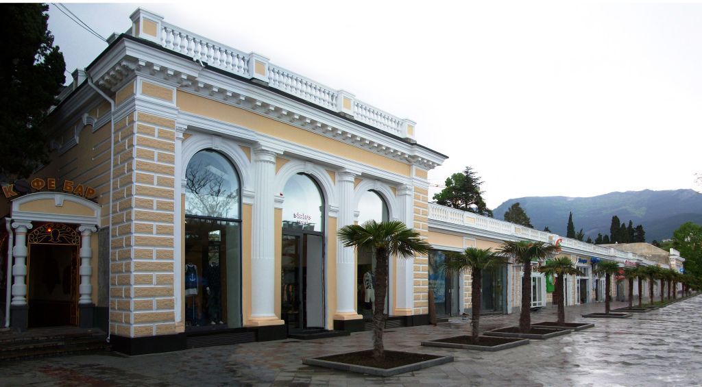 Предмет охраны объекта культурного наследия регионального значения «Торговые ряды гостиницы «Россия», XIX век», расположенного по адресу: Республика Крым, г.Ялта, наб.им.В.И.Ленина, 11, литер «А».Нематериальные особенности объекта культурного наследия.Датировка: 1899г.Историко-художественная ценность: здание построено в стиле итальянского Ренессанса по проекту архитектора Н.Г.Тарасова.Градостроительная ценность: выразительный архитектурный стиль и планировочная целостность сформированной городской структуры ставит здание в ряд ценных сооружений архитектурно-градостроительной значимости, является градообразующим объектом набережной Ялты. Исторически ценное функциональное назначение: объект является элементом комплекса гостиницы «Россия» - одного из первых и наиболее величественных зданий Ялты, уникального памятника отечественной архитектуры, градостроительства, истории и культуры, связанного с пребыванием в Ялте множества выдающихся личностей. Здание является одним из первых торговых заведений Ялты, сохранившее свое первоначальное функциональное назначение.Материальные особенности объекта культурного наследия. Градостроительные характеристикиМестоположение здания: объект расположен по «красной» линии застройки в градостроительной среде исторической части города, в плотной застройке улицы набережной им. В.И. Ленина.Силуэт, габариты: силуэт представляет собой вытянутый прямоугольник. Охраняются: силуэт, габариты и конфигурация в плане здания на период конца XIXв.– начала XXв.Архитектурные и конструктивные характеристики.Объемно-пространственная композиция: здание одноэтажное с подвалом, по конфигурации в плане представляет вытянутый прямоугольник, со сквозным проходом, соединяющим гостиницу «Россия» с набережной и являющейся поперечной осью здания. Общий объем фланкирован с двух сторон более развитыми кубическими объемами в плане и высоте. Охраняются: форма в плане на период строительства, высотные отметки по венчающим карнизам.Крыша: плоская, крыша фланкирующих объемов - скатная вальмовая, конструкции крыши - деревянные, наслонные стропила. Покрытие кровли из оцинкованной стали по деревянной обрешетке. Охраняется местоположение, конфигурация, габариты, (высотные отметки и характер кровельного покрытия основного объема определяются проектом реставрации).Композиция и архитектурное оформление фасадов:Южный фасад:- охраняются: местоположение, форма, размер и количество оконных и дверных проемов на период строительства, декоративное обрамление оконных и дверных проемов, декоративное членение плоскости стен, материал.Восточный фасад: - охраняются: местоположение, форма, размер и количество оконных и дверных проемов на период строительства, декоративное обрамление оконных и дверных проемов, декоративное членение плоскости стен, материал.Западный фасад:- охраняются: местоположение, форма, размер и количество оконных и дверных проемов на период строительства, декоративное обрамление оконных и дверных проемов, декоративное членение плоскости стен, материал.Оформление центрального входа на террасу в виде ризалита:- охраняются: местоположение, форма, размер, габариты, конфигурация, декоративное обрамление в виде прямоугольных пилястр.Каннелюрованные колонны римско-дорического модульного орде