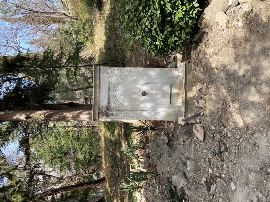 Нематериальные особенности объекта культурного наследияДатировка: первая половина XIX века.Материальные особенности объекта культурного наследияГрадостроительные характеристикиМестоположение: охраняется местоположение.Архитектурные и конструктивные характеристикиСооружение фонтана: фонтан прямоугольный в плане, состоит из прямоугольной стелы и бассейна. Стела оформлена в восточном стиле, декорирована арабской вязью, расположенной симметрично с двух сторон, двумя розетками над ними и центральным фигурным орнаментом. Он образует еще одну нишу с арочным завершением. В ней расположен небольшой выступ с арочным килевидным завершением, в нем – водомет. По верху стелы в виде венчающего карниза проходит выкружка. Водоприемная чаша прямоугольной формы со скругленными внутренними гранями. Охраняется: местоположение, форма, размеры, материал.Колористическое решение: цвет натурального камня (светлый).Предмет охраны может конкретизироваться при изменении степени исследованности памятника.