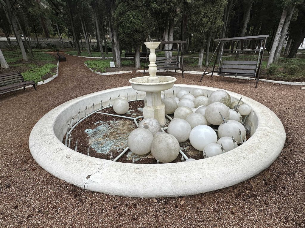 Нематериальные особенности объекта культурного наследияДатировка: середина ХХ века.Материальные особенности объекта культурного наследияГрадостроительные характеристикиМестоположение: охраняется местоположение.Архитектурные и конструктивные характеристикиСооружение фонтана: фонтан круглый в плане, состоит из бассейна и чаши в его центре. Бортики бассейна невысокие, внешняя грань скруглена. Центральная фигура представляет собой шестигранную призму с вогнутыми через одну гранями, на которую установлена шестигранная призма, меньшего размера. Выше – круглая металлическая чаша. В ее центре – прямоугольная призма, переходящая в стилизованную балясину, а над ней – небольшая круглая чаша. В этой чаше – водомет. Охраняется: местоположение, форма, размеры, тип материала.Виды отделки: охраняется вид отделки после проведения реставрационных работ и восстановления исторического облика с последующей корректировкой предмета охраны.Колористическое решение: охраняется колористическое решение после проведения реставрационных работ и восстановления исторического колера с последующей корректировкой предмета охраны.Предмет охраны может конкретизироваться при изменении степени исследованности памятника.